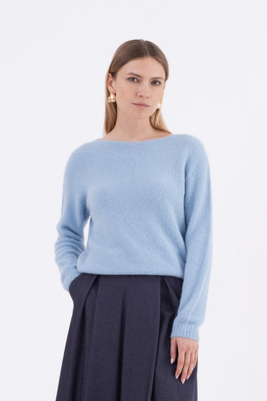Maglia in baby alpaca con scollo a barchetta azzurro Minevra