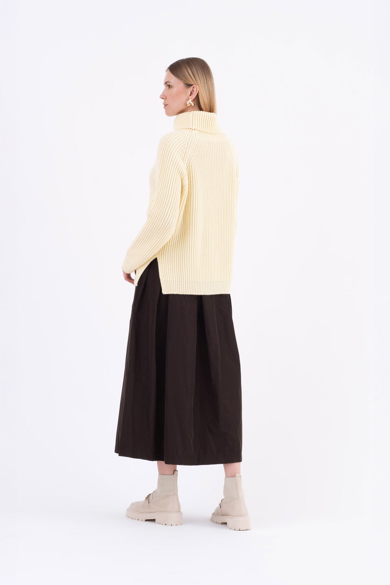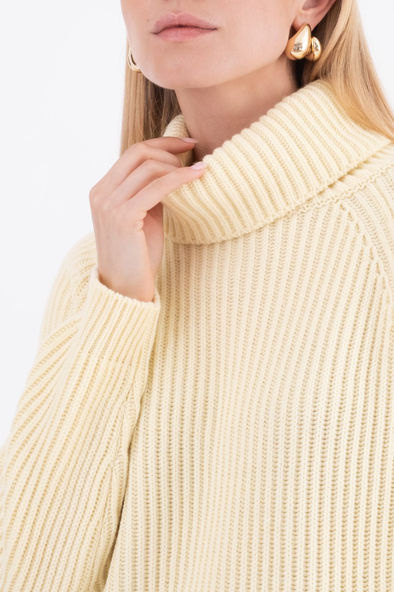 Maglia a coste in misto lana con collo alto a ciambella e maniche lunghe, realizzata in calda costa inglese.