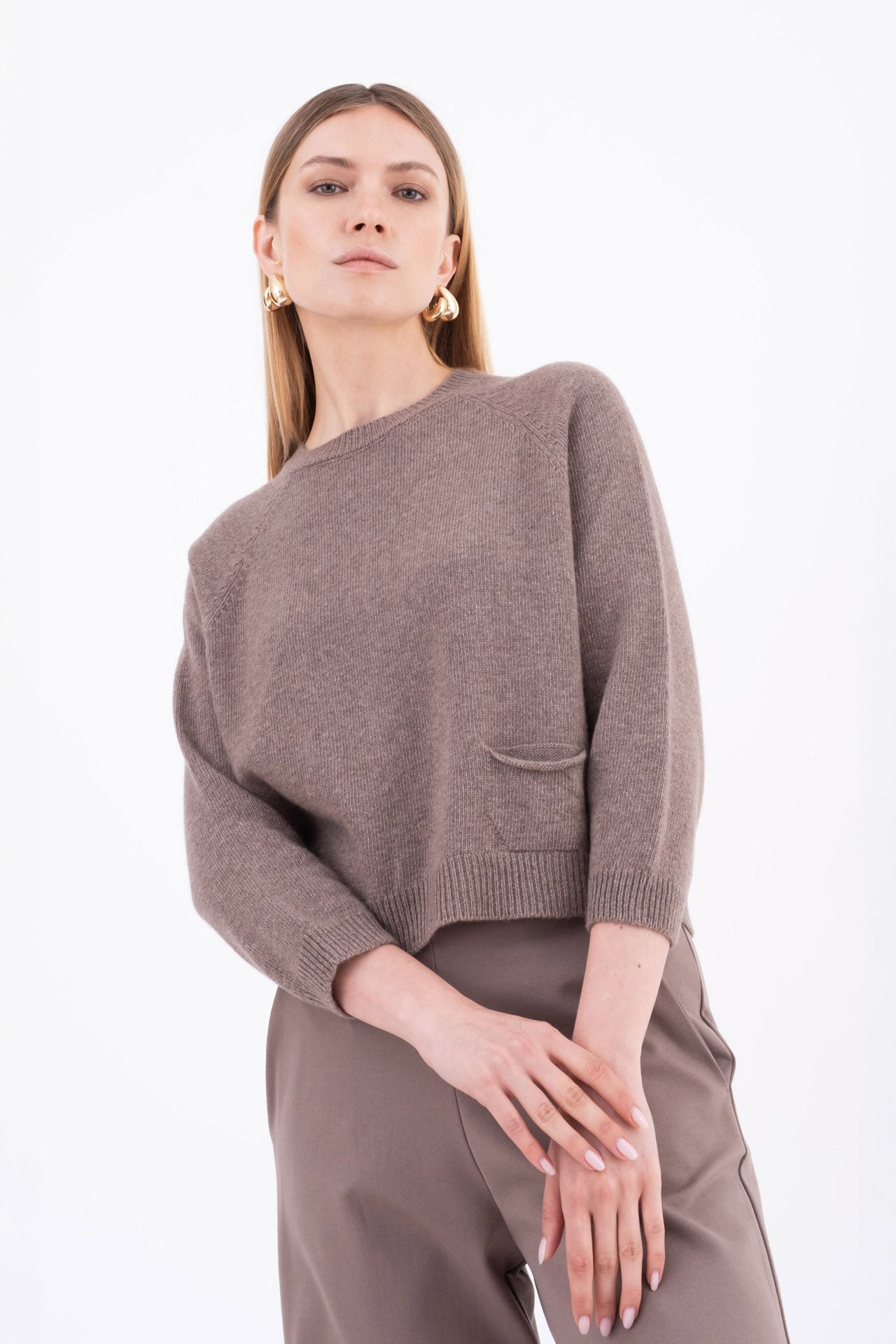 Maglioncino cropped lana cashmere maniche a 3/4 fango Mantova