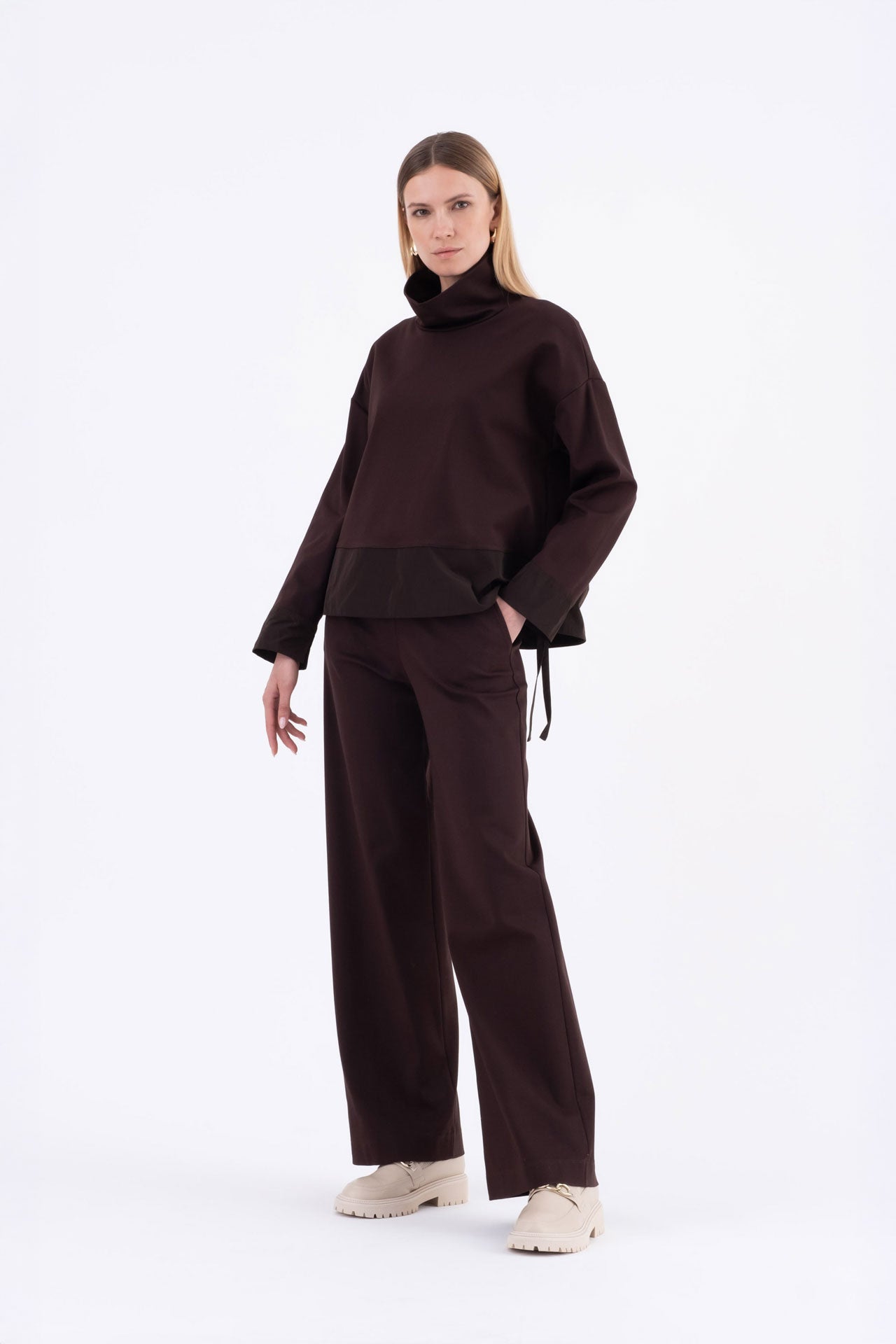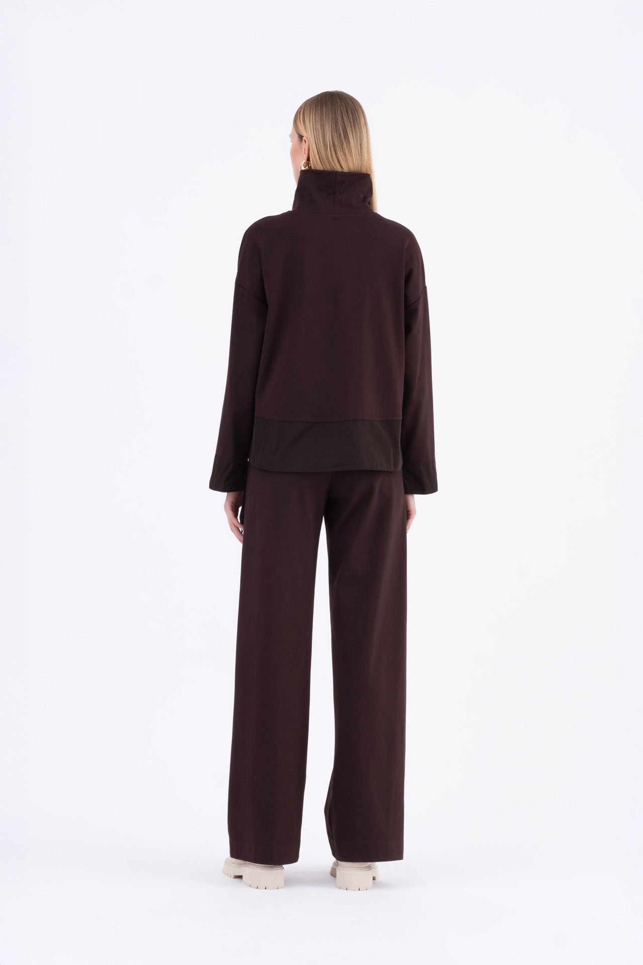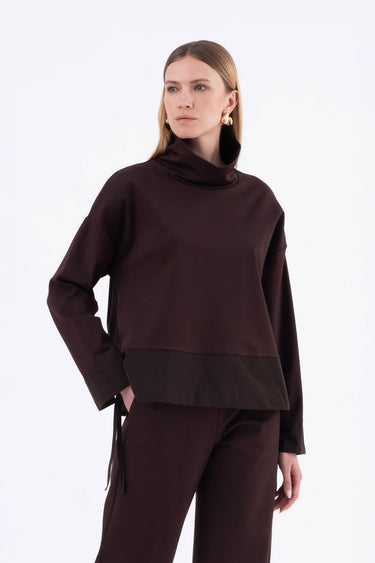 Top boxy in punto milano e taffetà marrone Timone