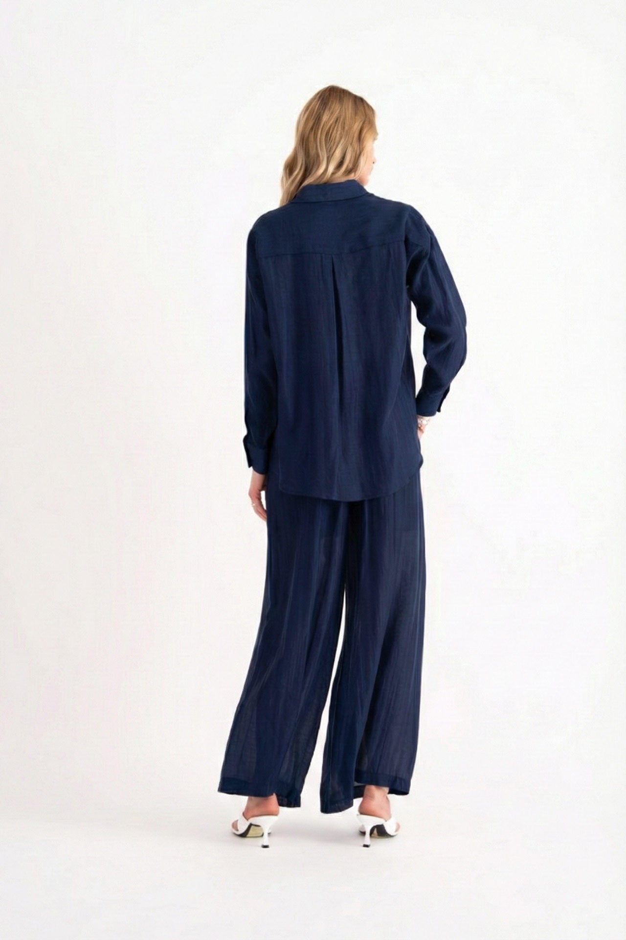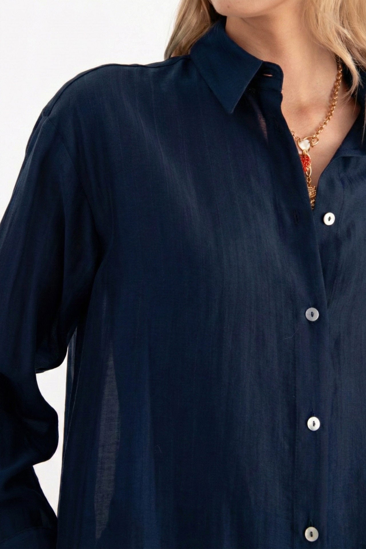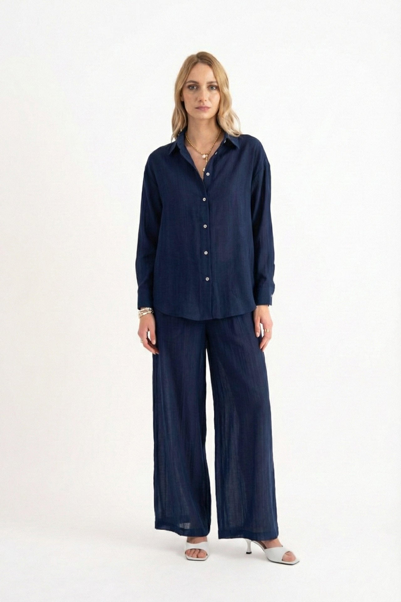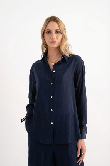 Camicia fluida mussola blu maniche lunghe Shiren