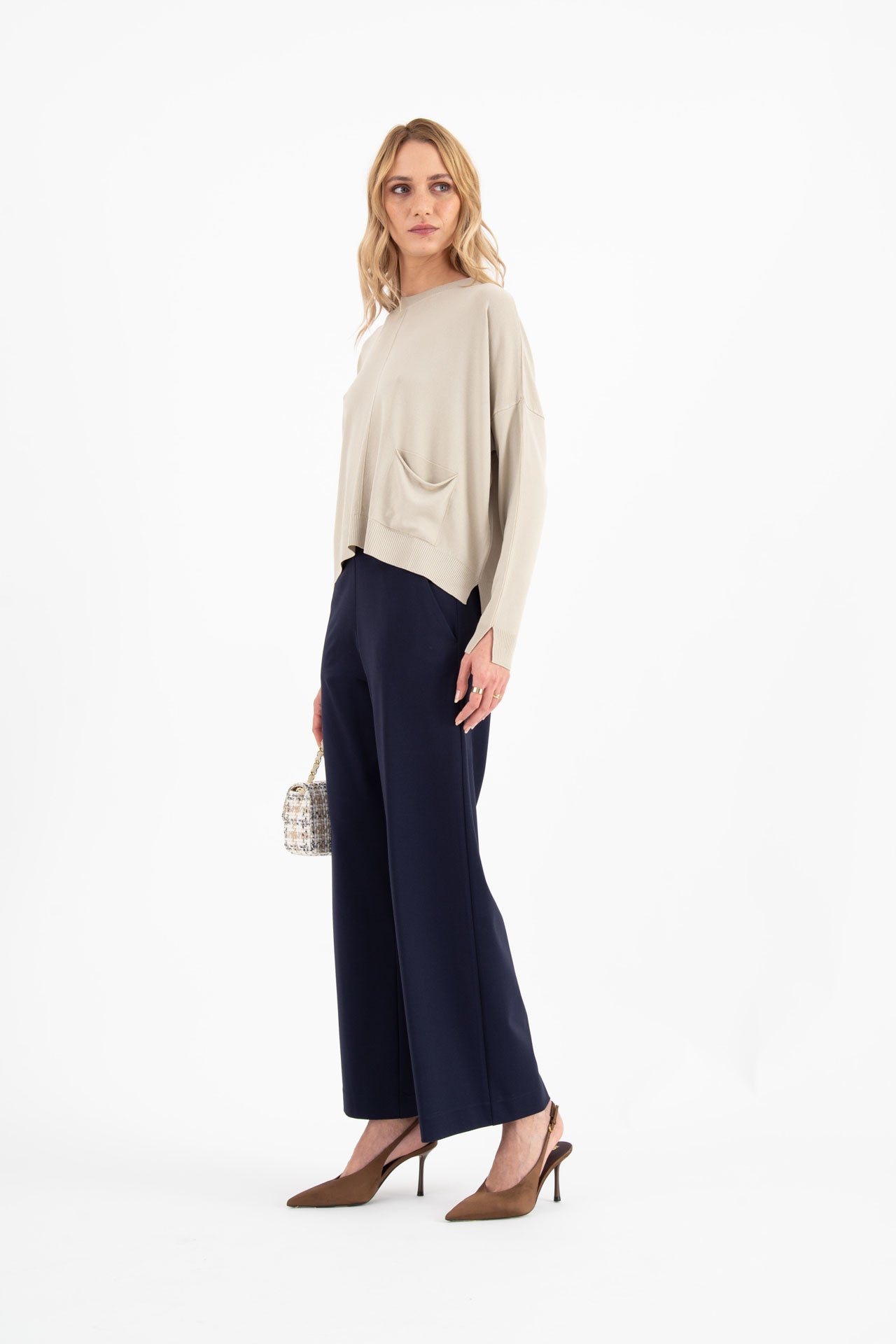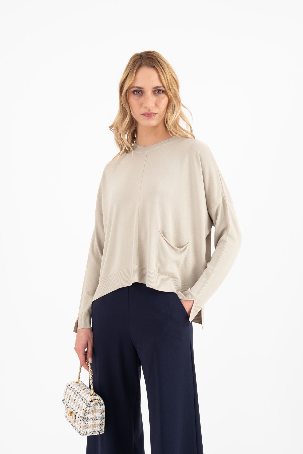 Maglia boxy viscosa crepe leggera beige Mareggiata