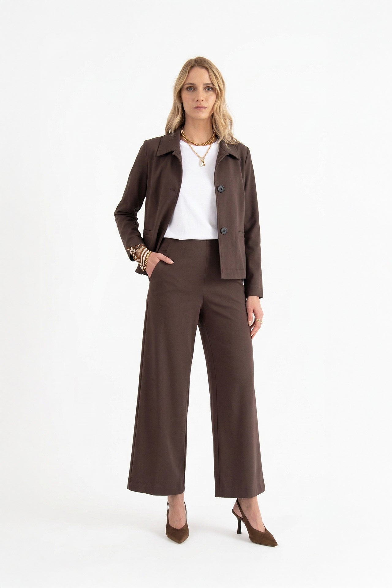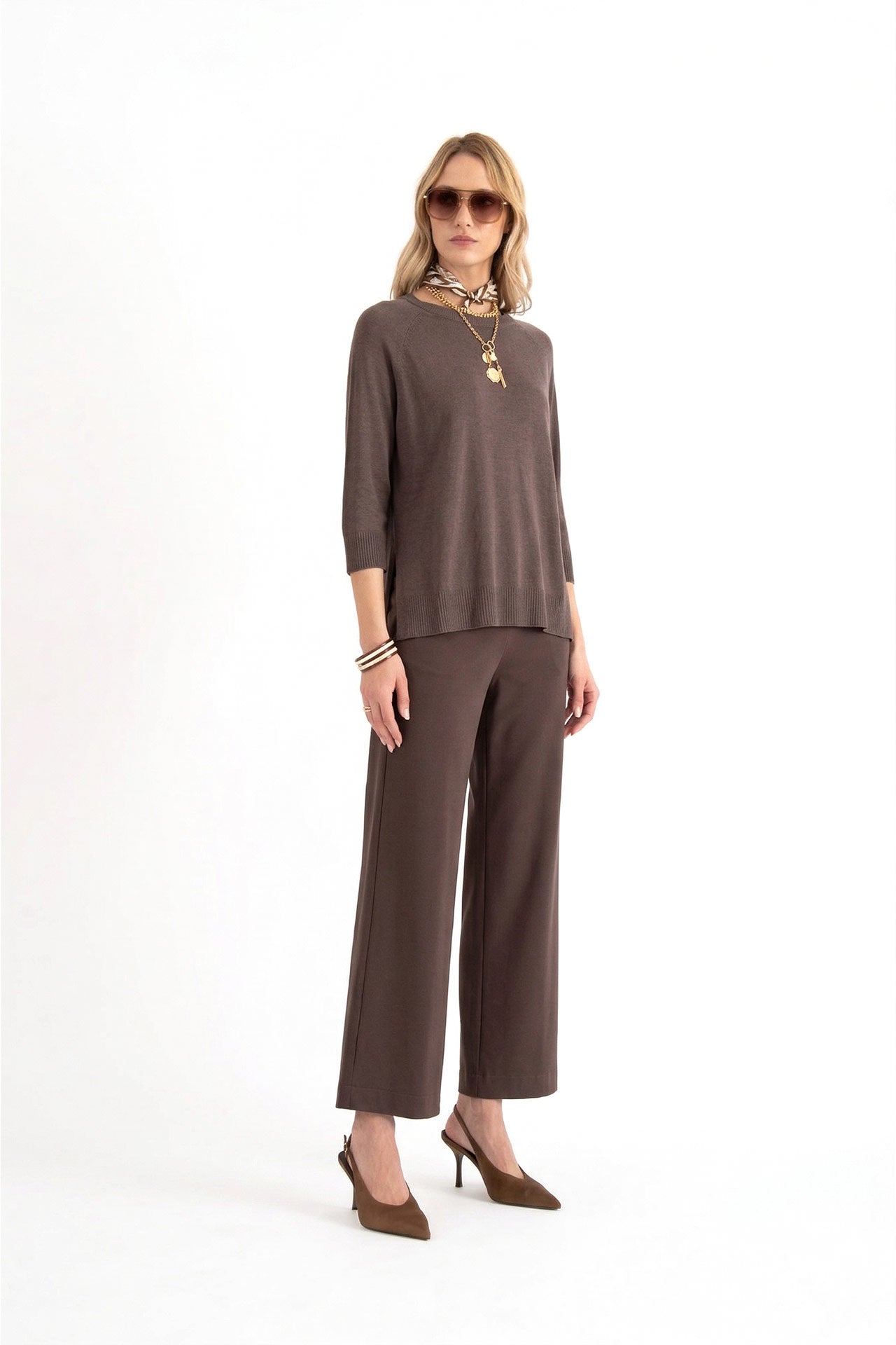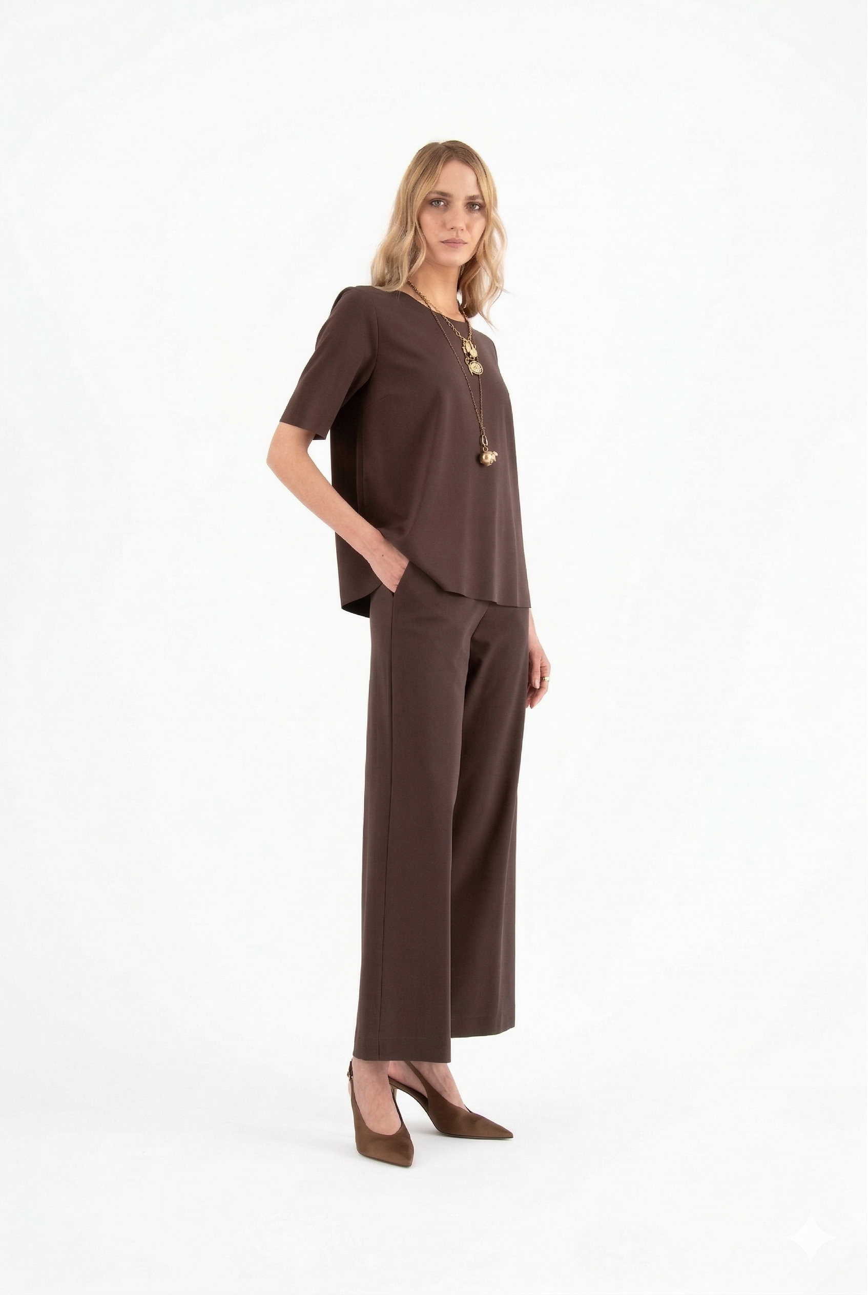 Pantalone ampio alla caviglia in punto milano con elastico marrone Padova