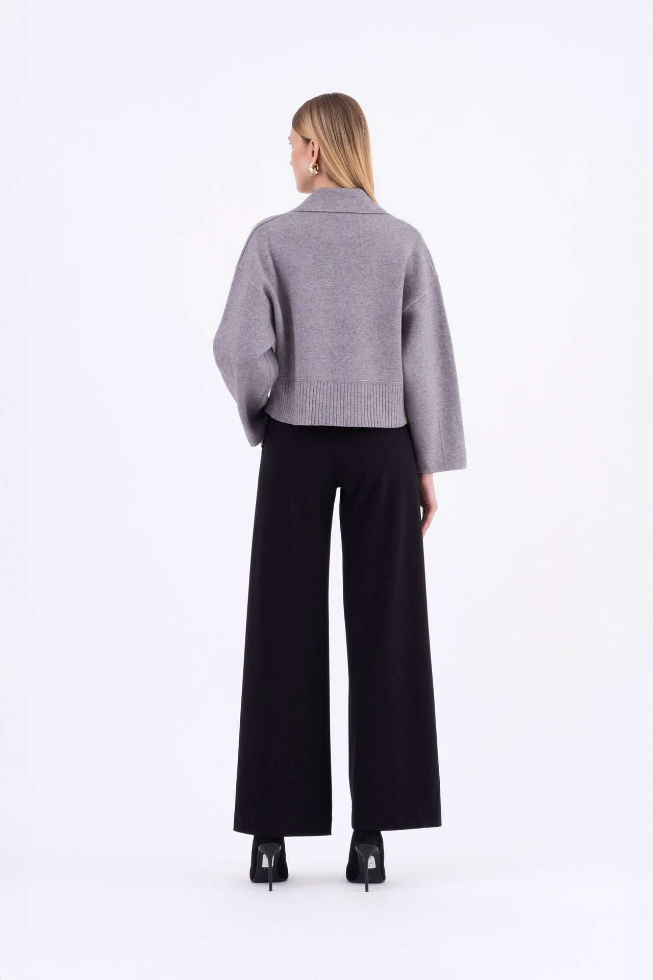 Boxy cropped sweater with front buttons grey Milica