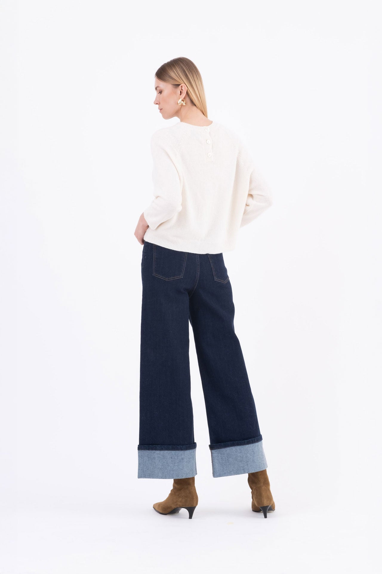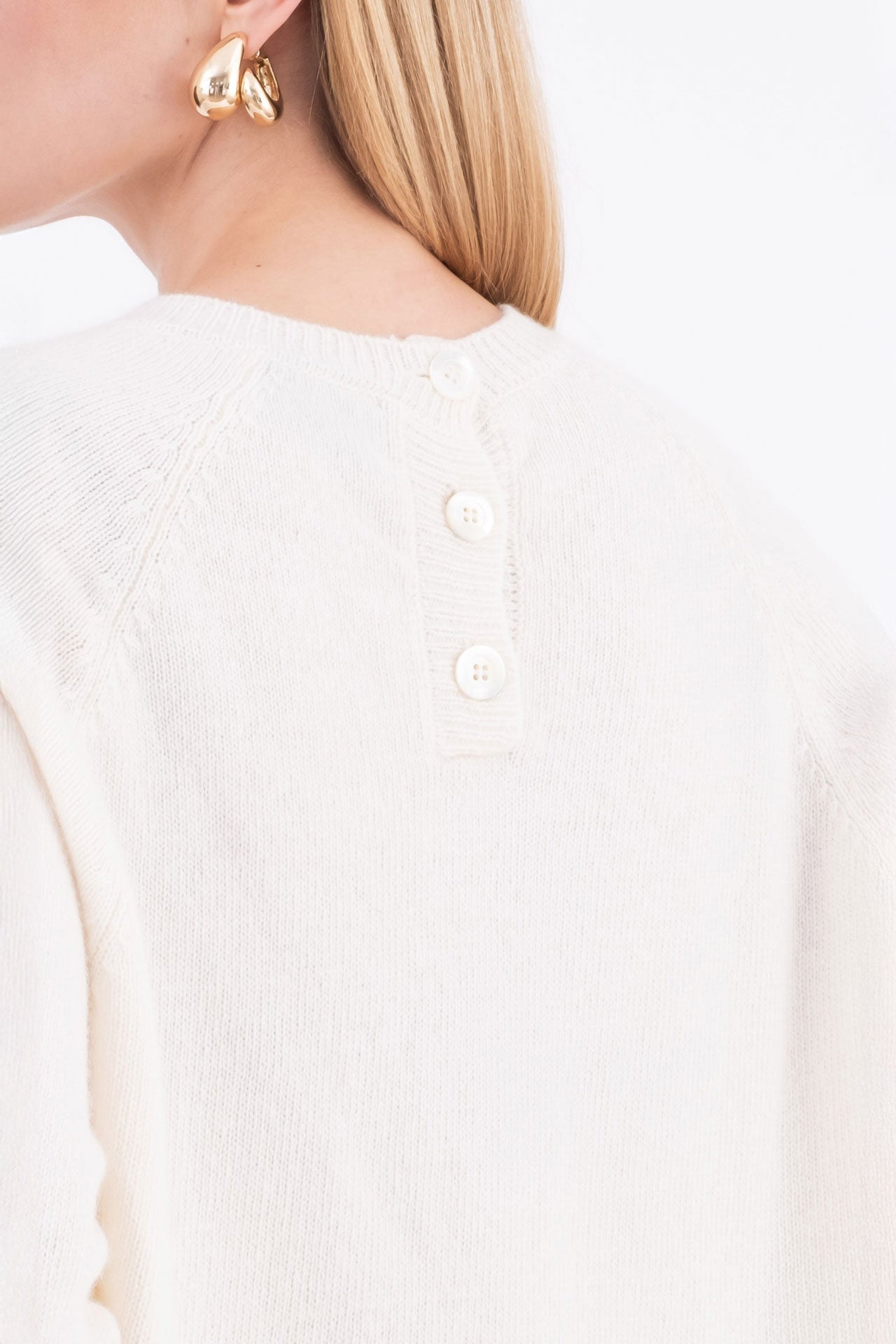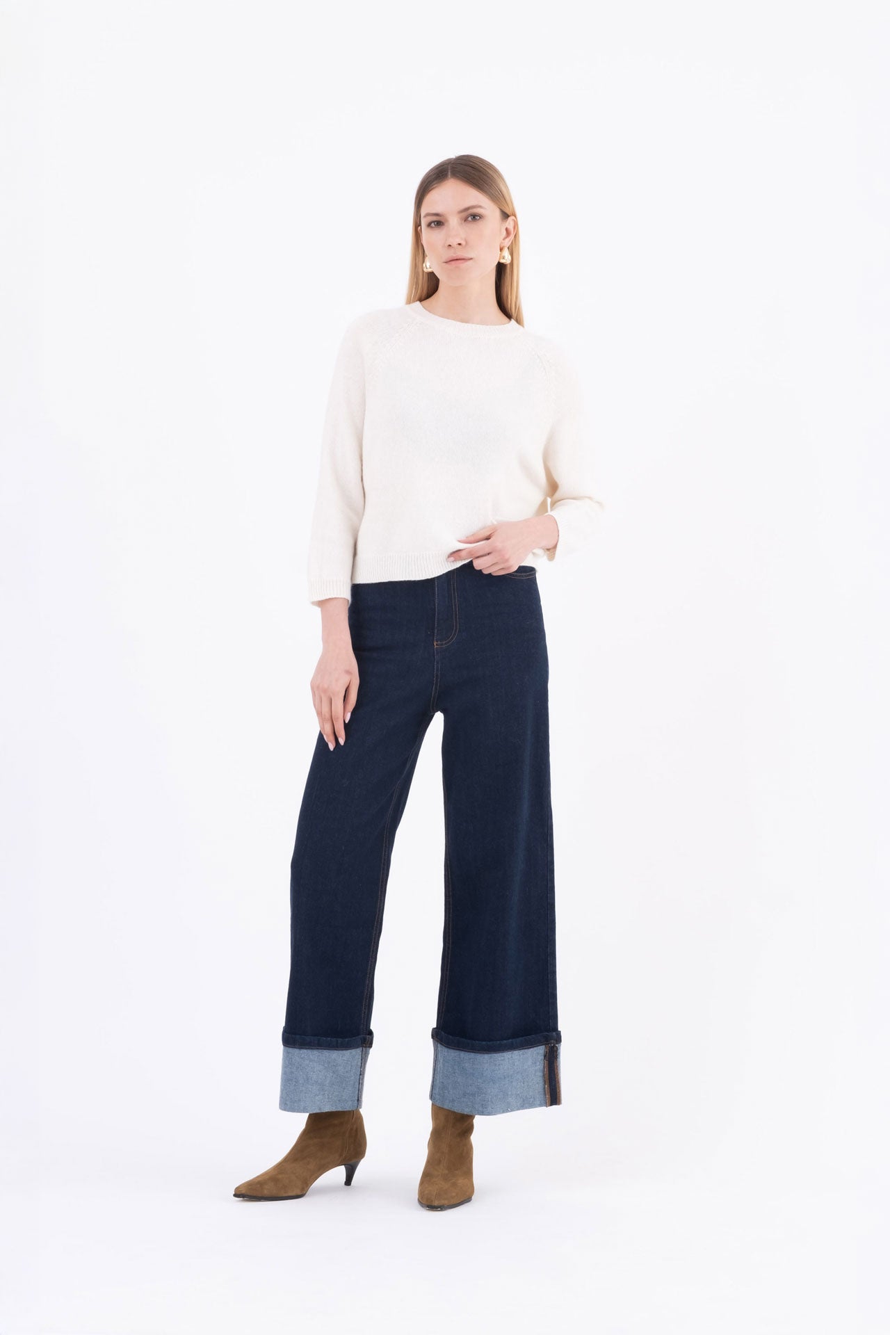 Cropped wool cashmere sweater 3/4 sleeves white Mantova