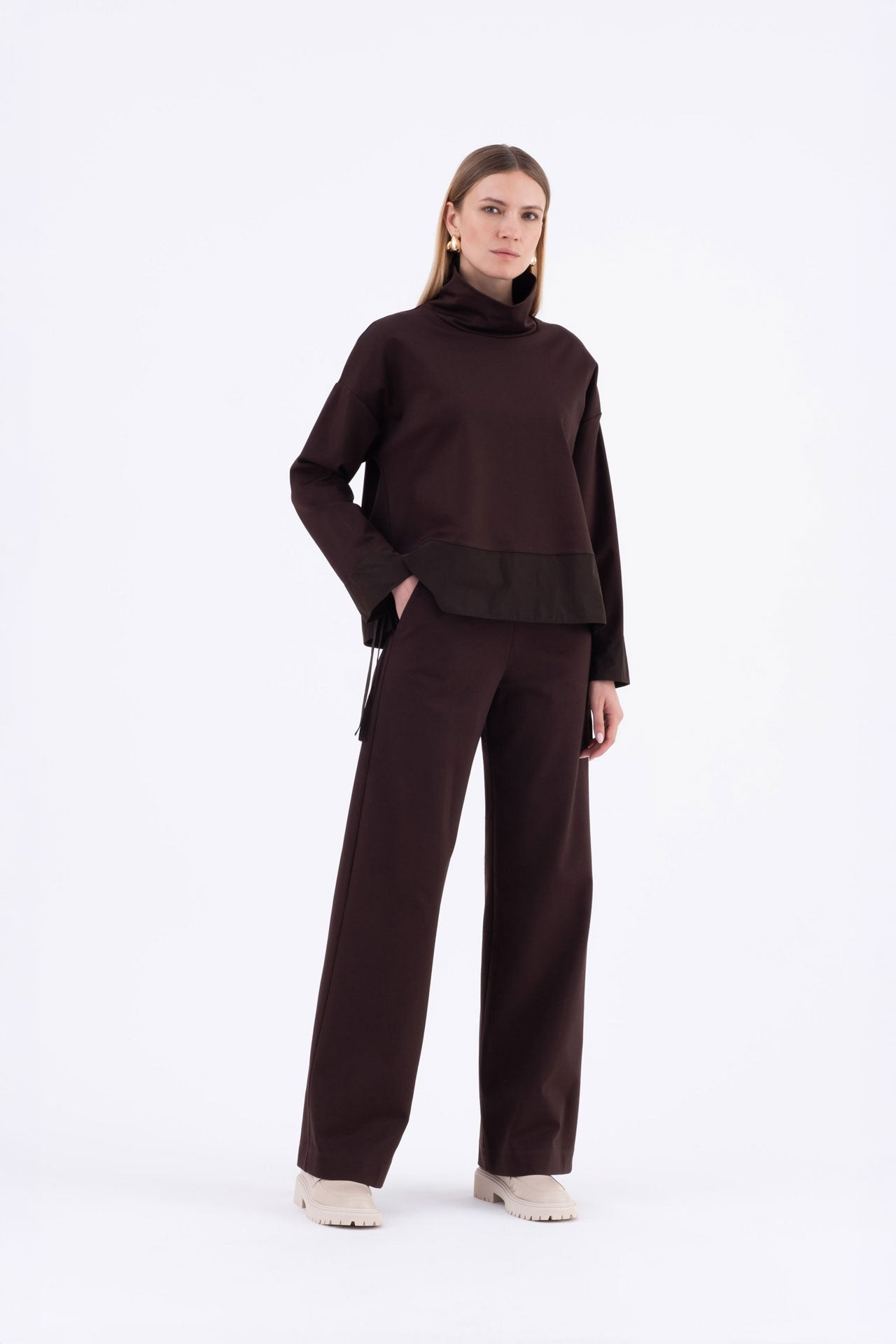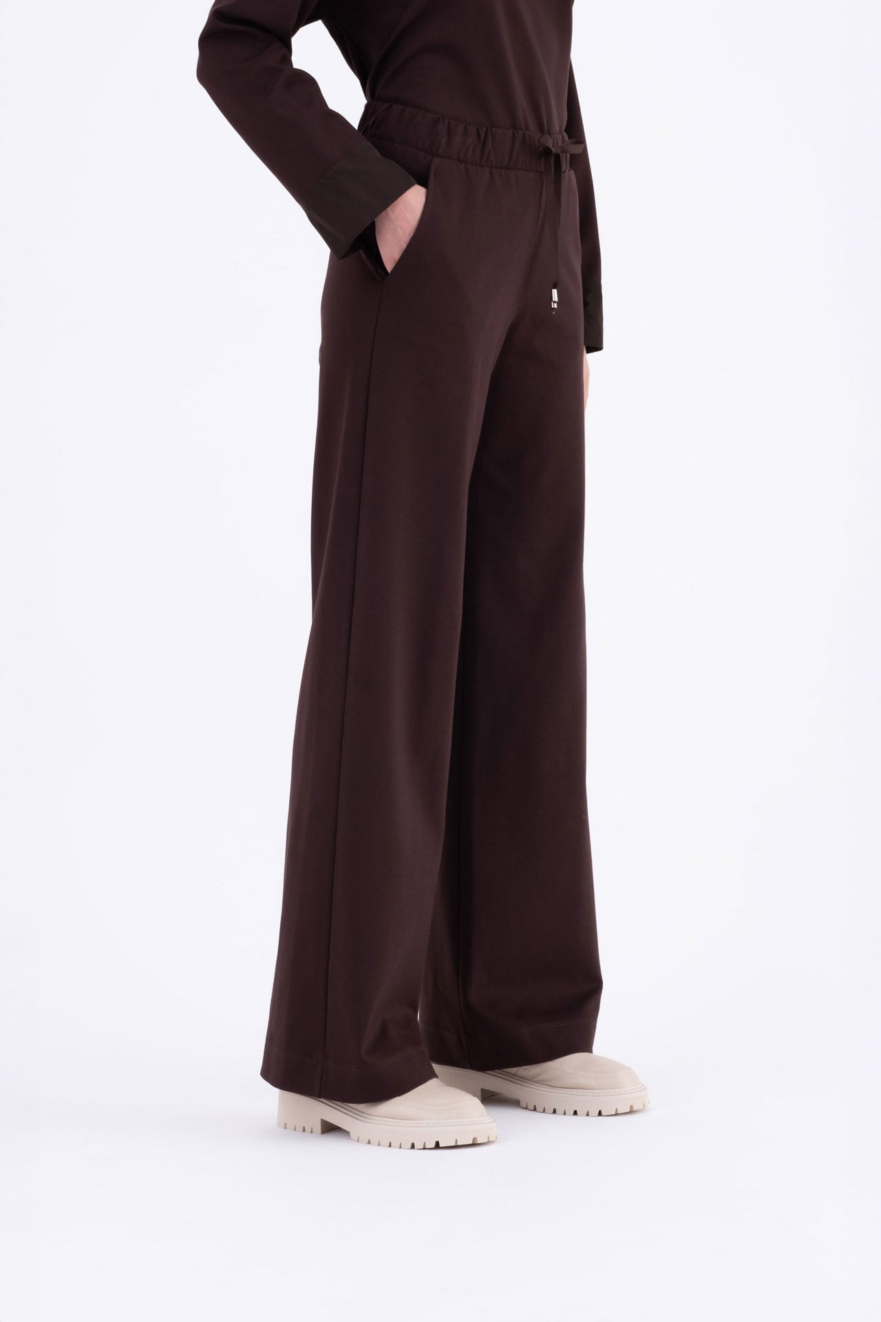 Palazzo pants made from soft Punto Milano viscose, featuring an elasticated waistband and adjustable drawstring for maximum comfort.