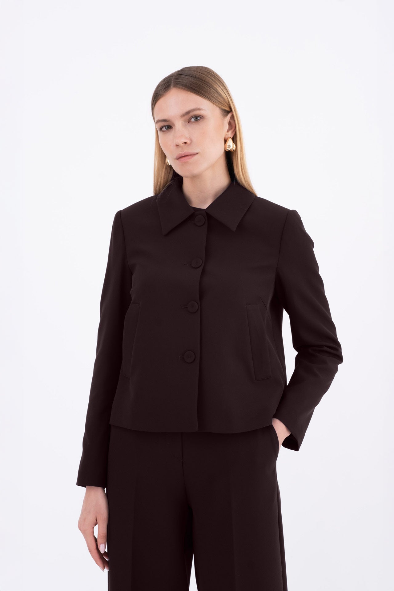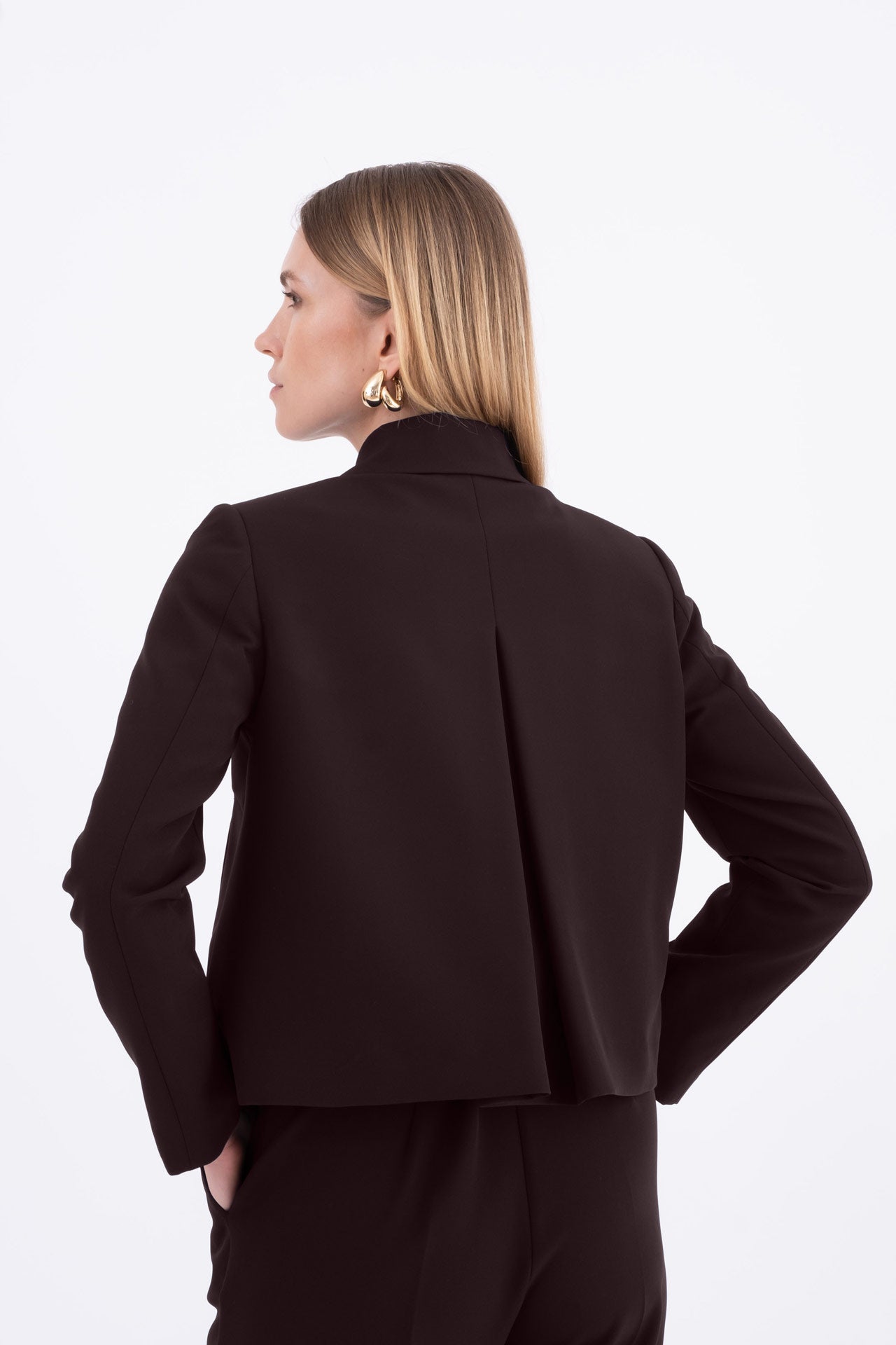 Chanel-style cropped jacket in tech fabric dark brown Rennes