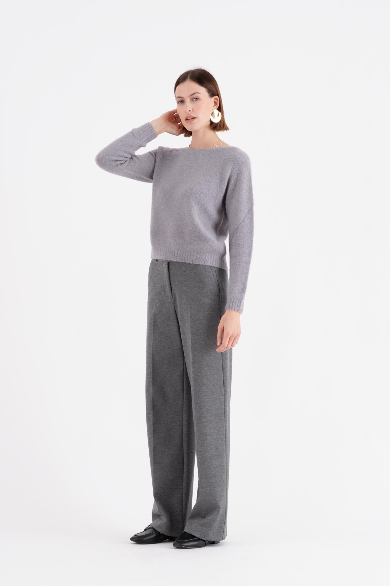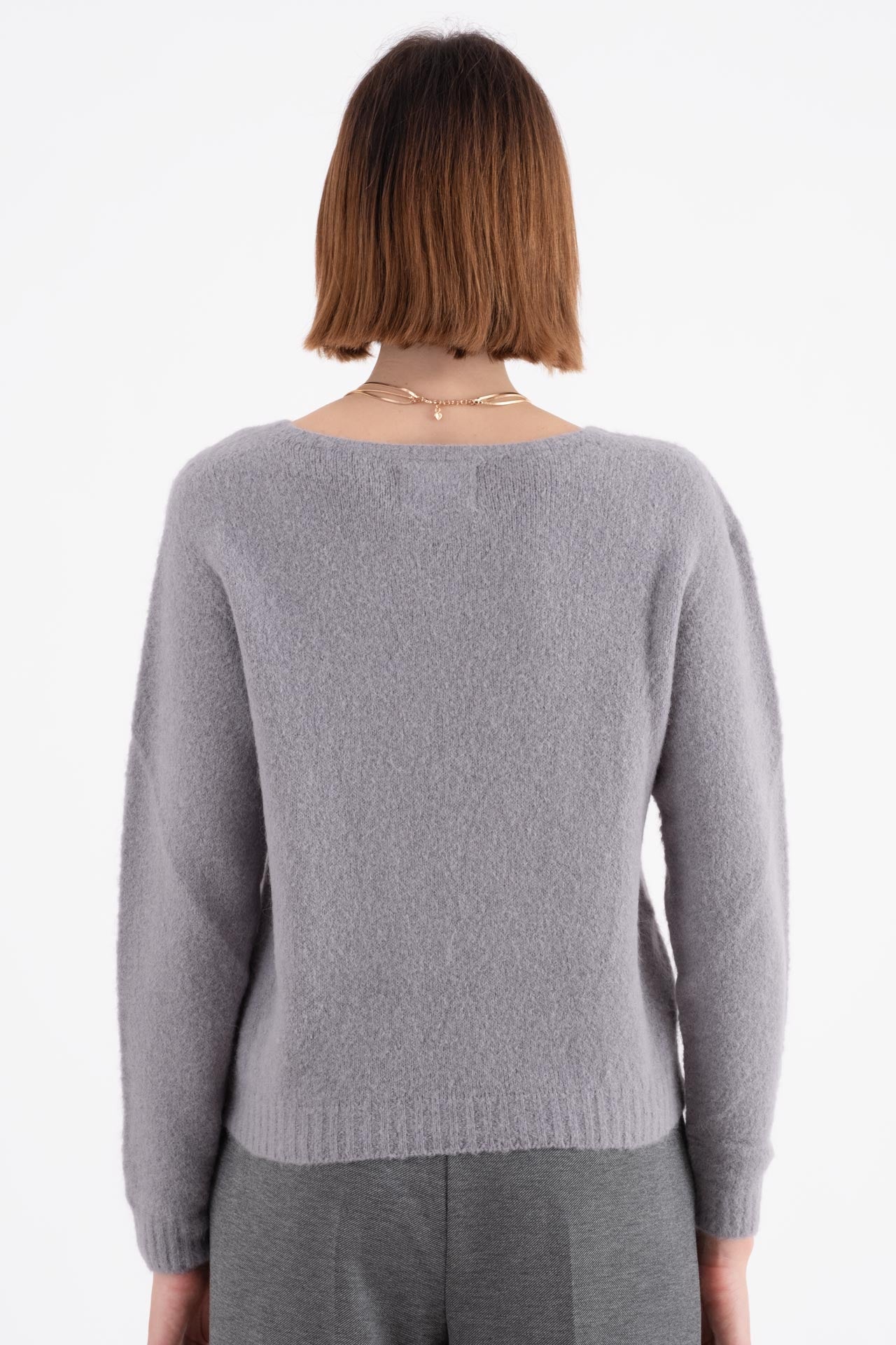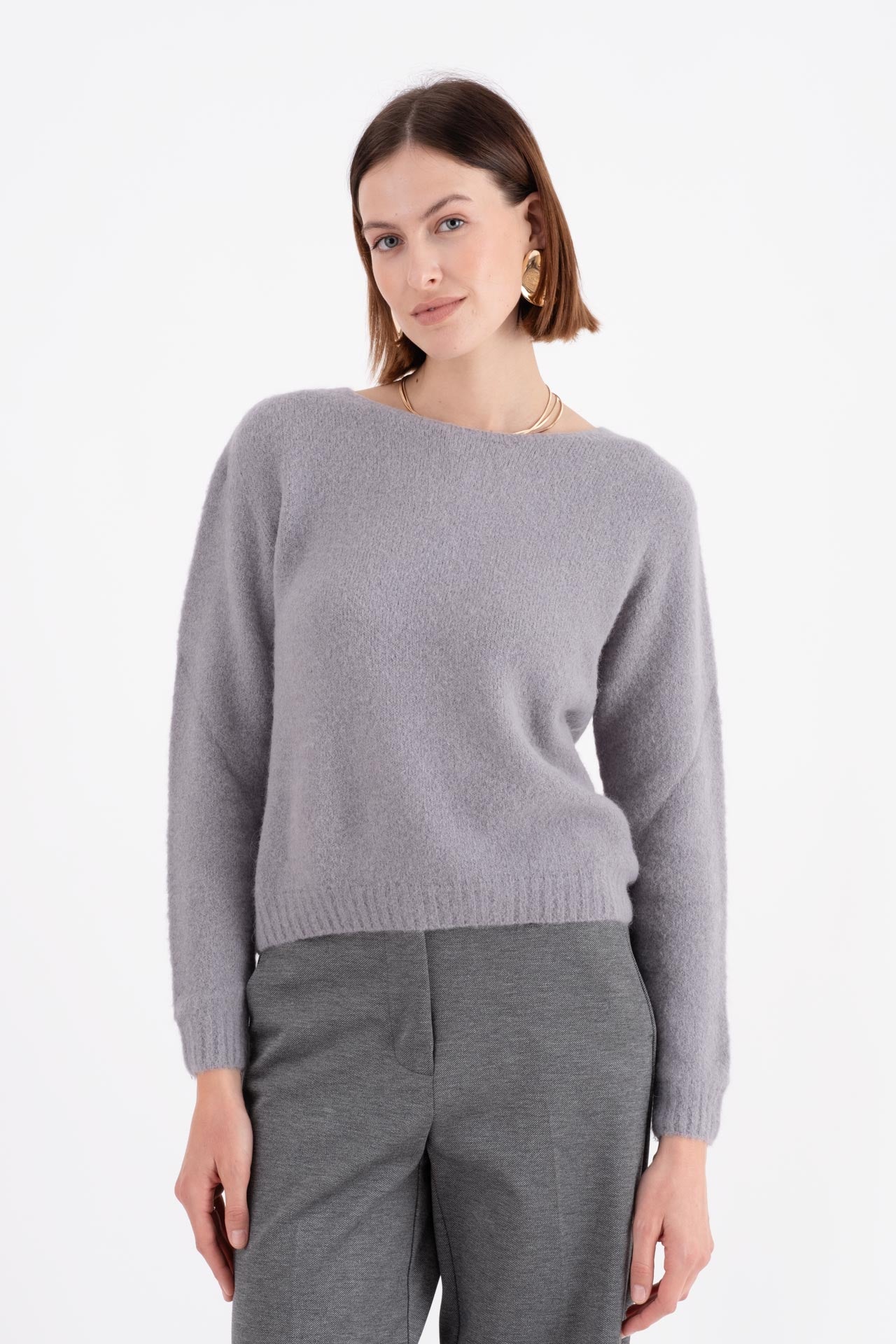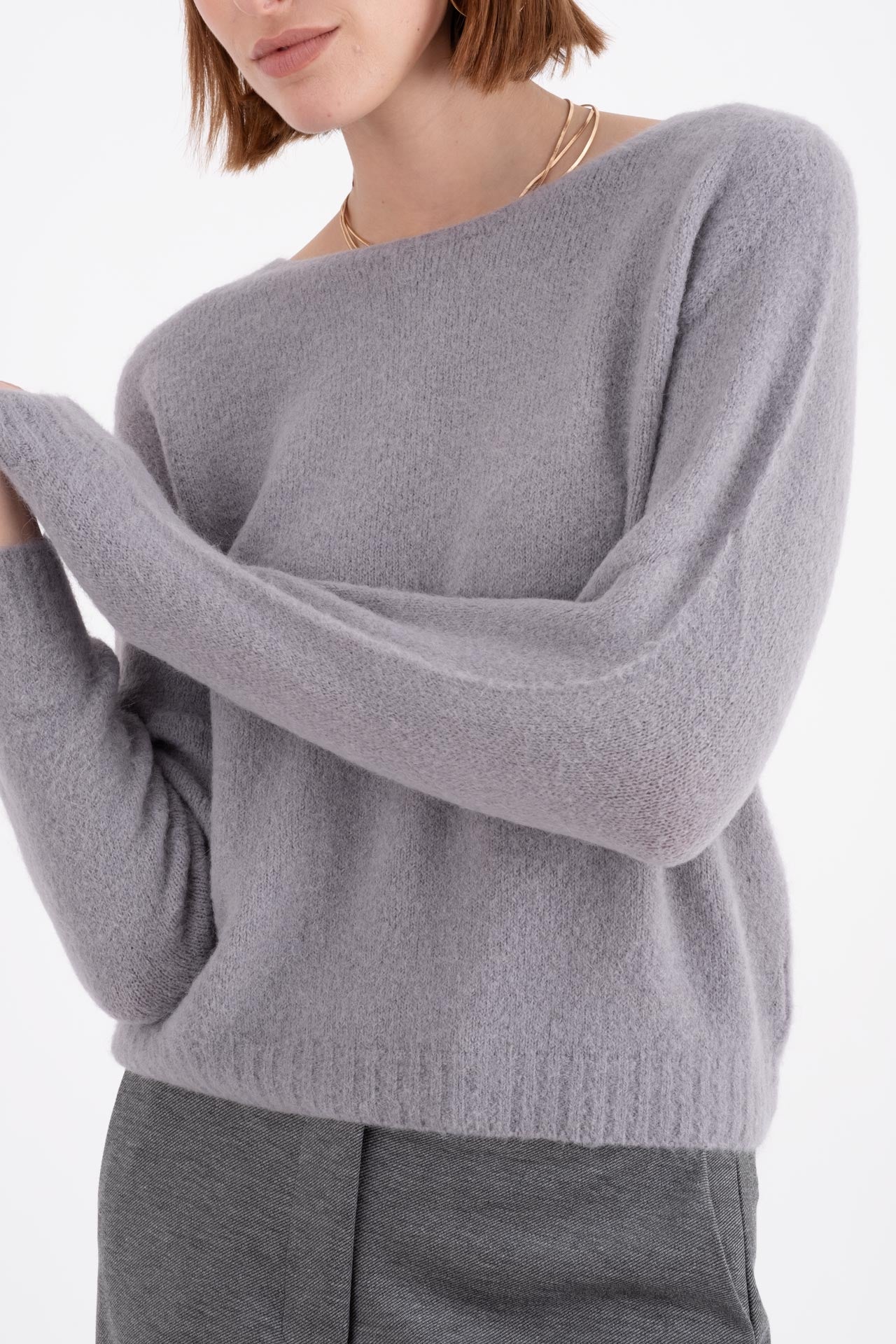 Maglia con scollo a barchetta in morbido filato di baby alpaca, caldo e leggero al tempo stesso.