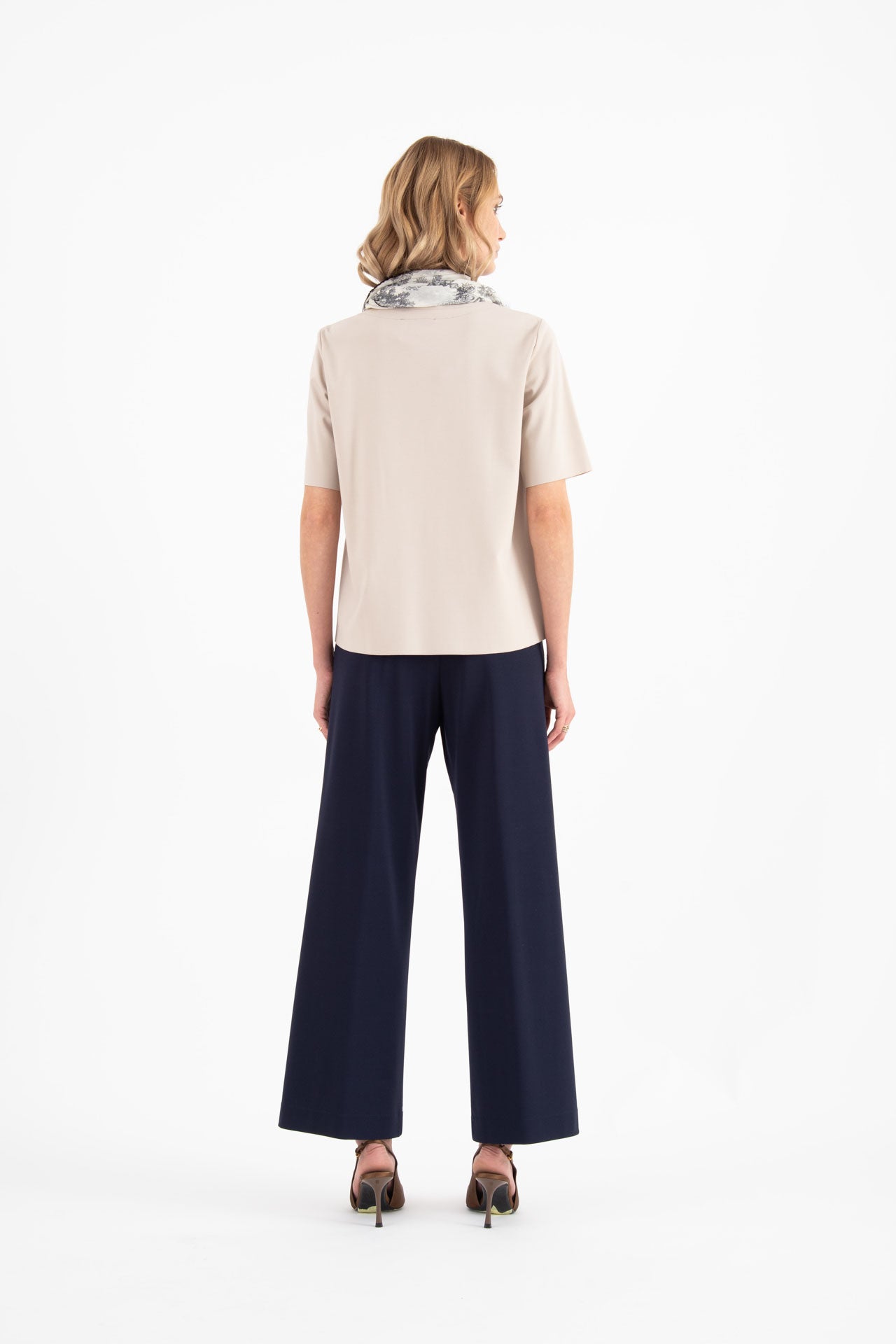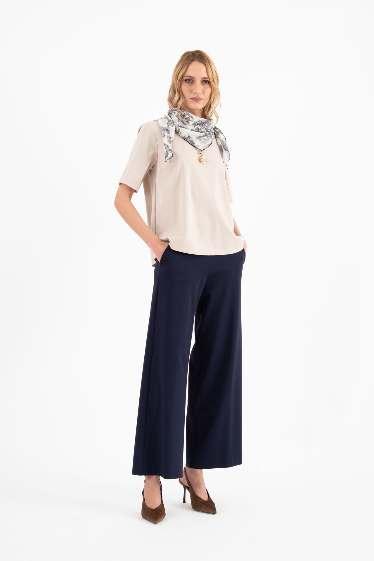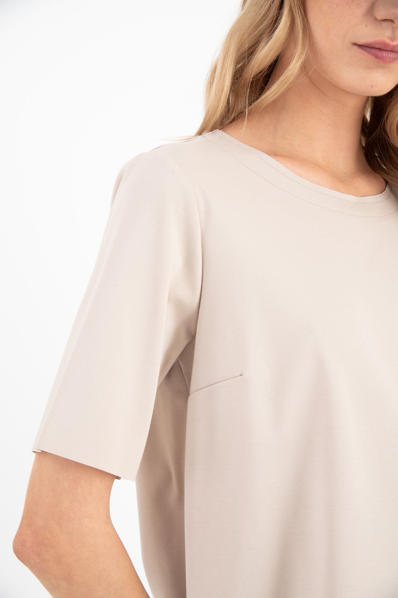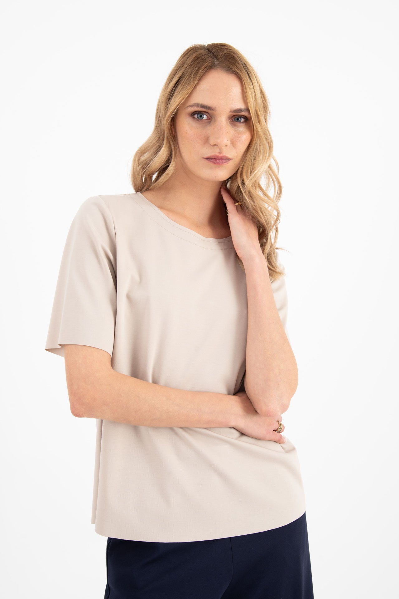 Cropped viscose punto milano T-shirt, featuring a round neckline and short sleeves with a raw-cut edge. Meticulously crafted, this T-shirt offers a blend of comfort and modernity.Cropped viscose punto milano T-shirt, featuring a round neckline and short sleeves with a raw-cut edge. Meticulously crafted, this T-shirt offers a blend of comfort and modernity.