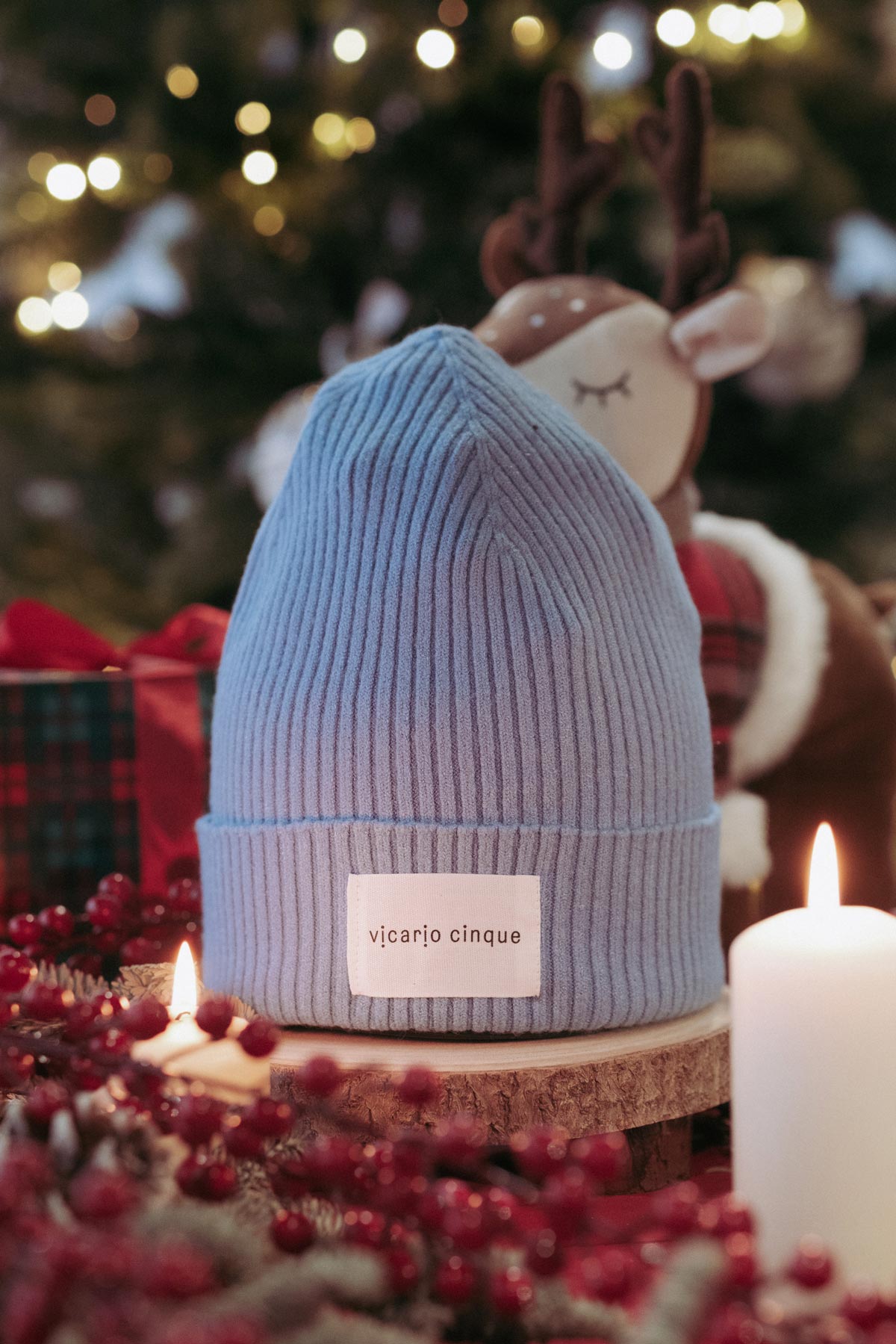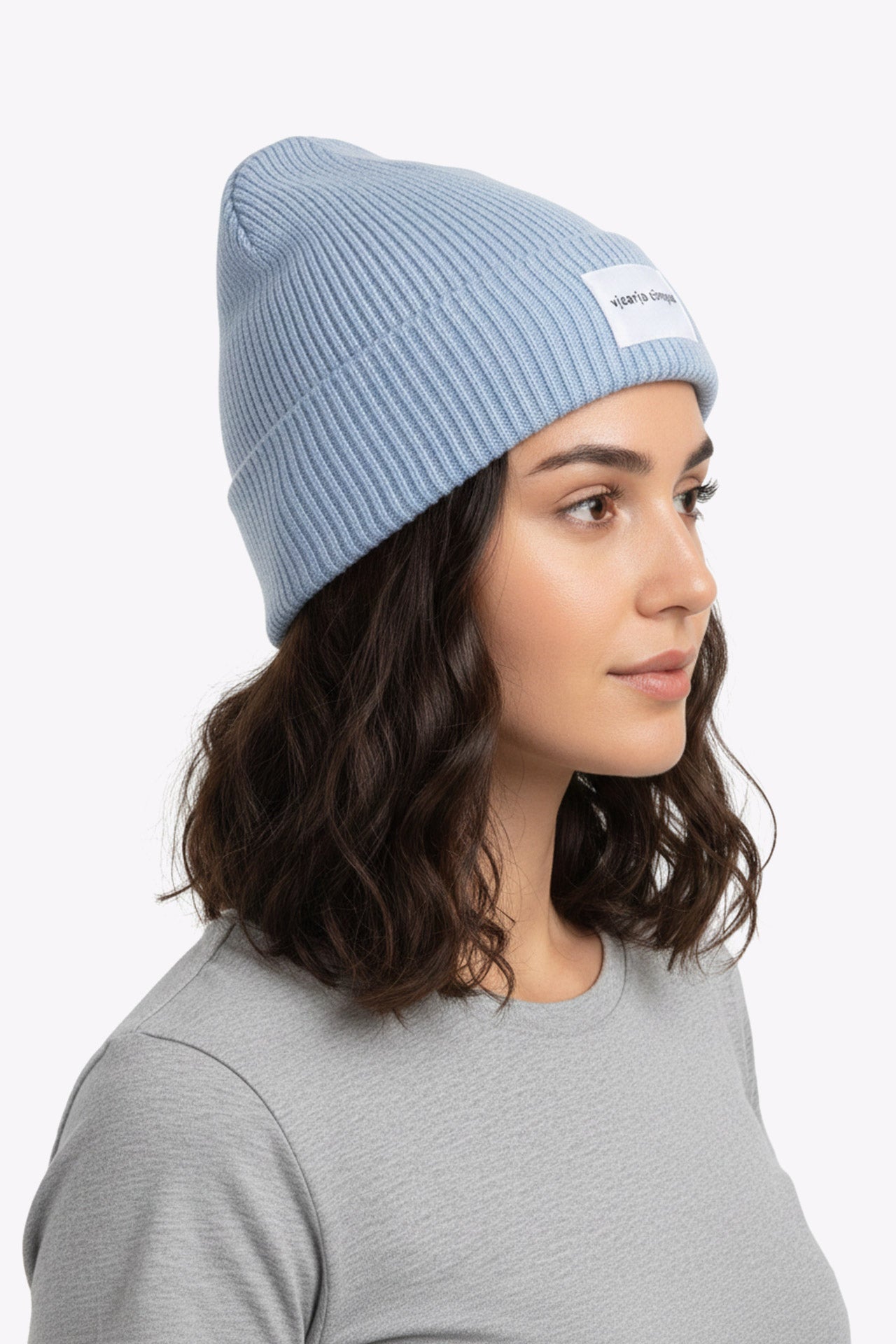 Berretto in lana a costine azzurro Hariel