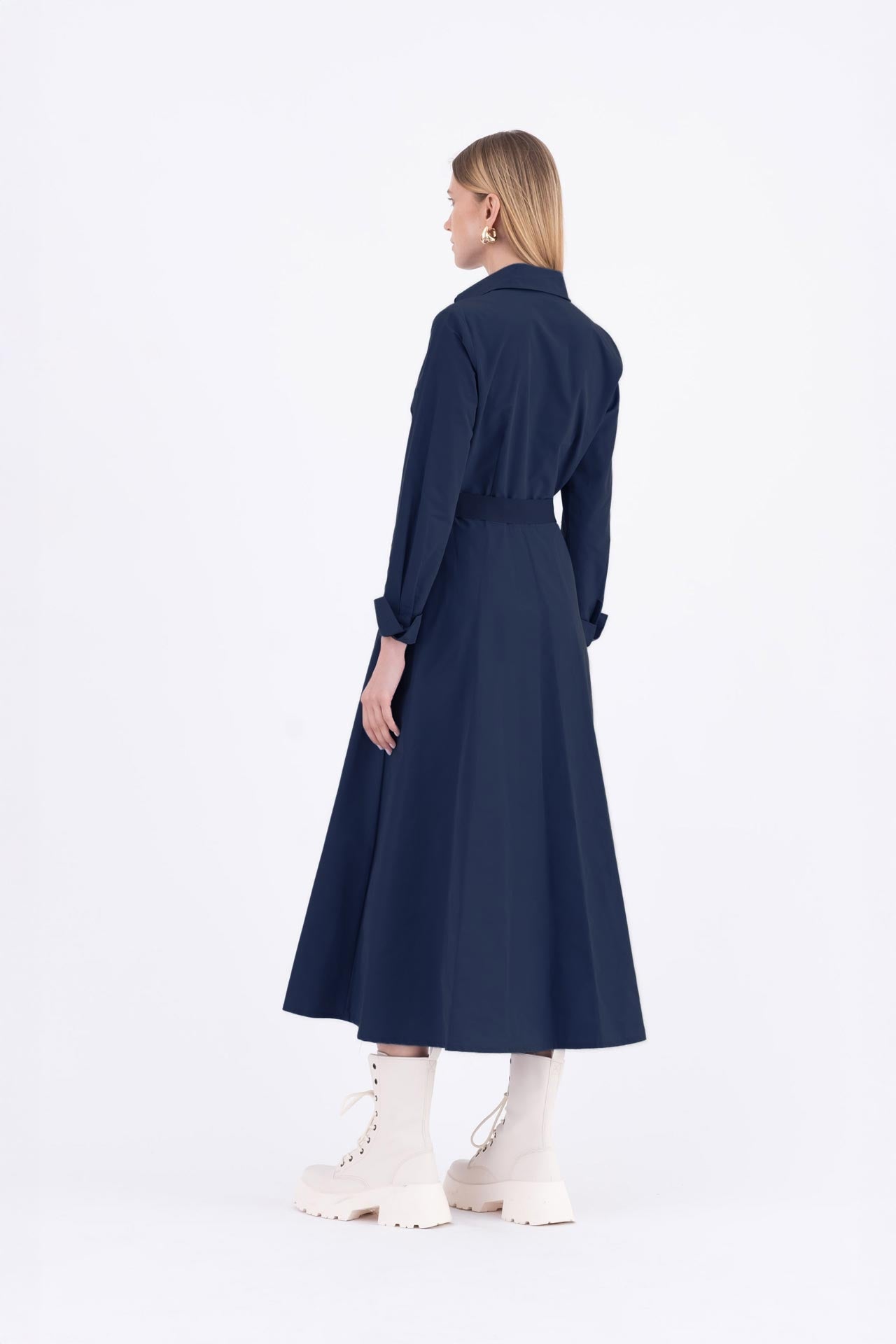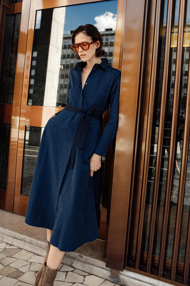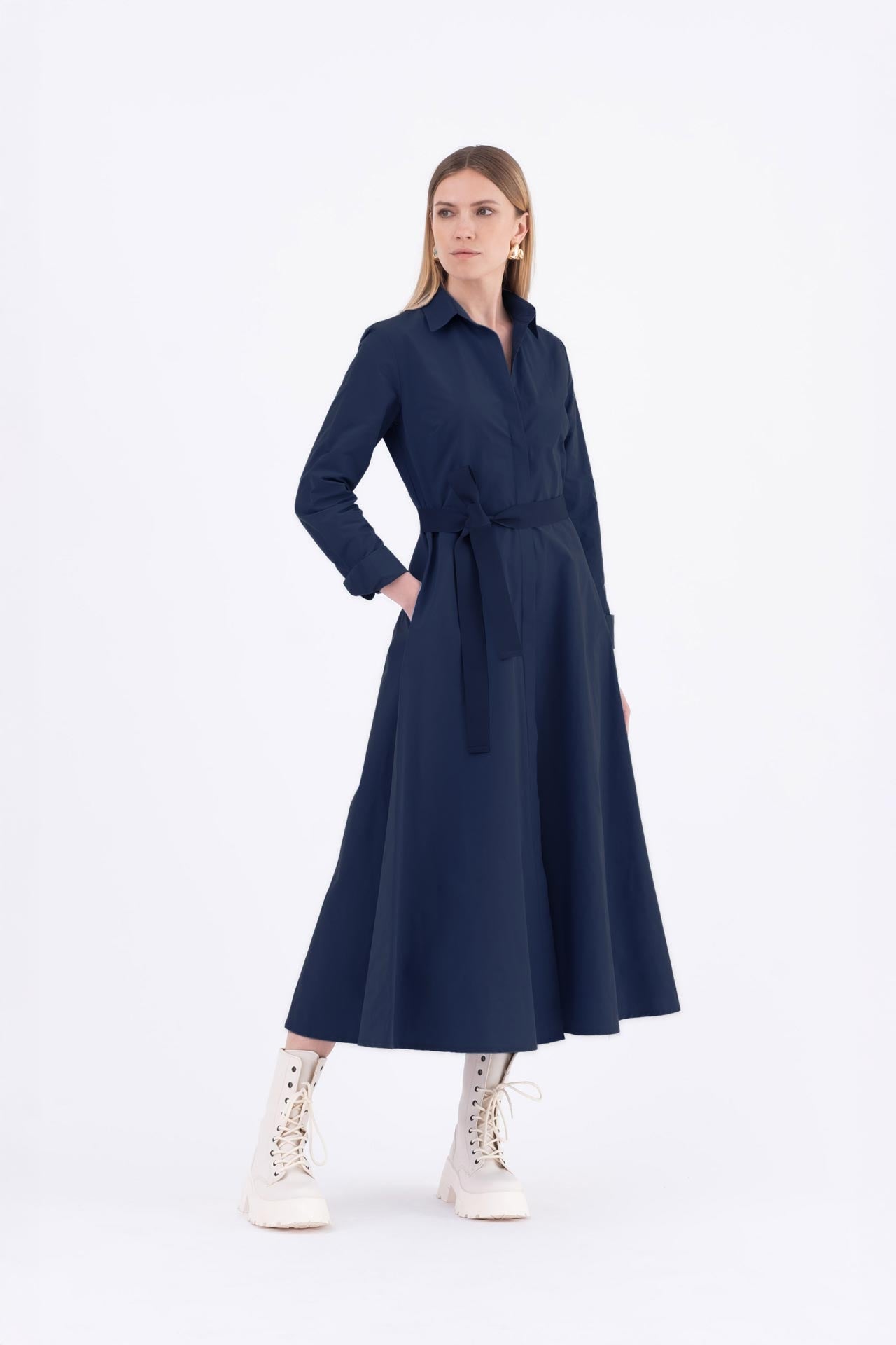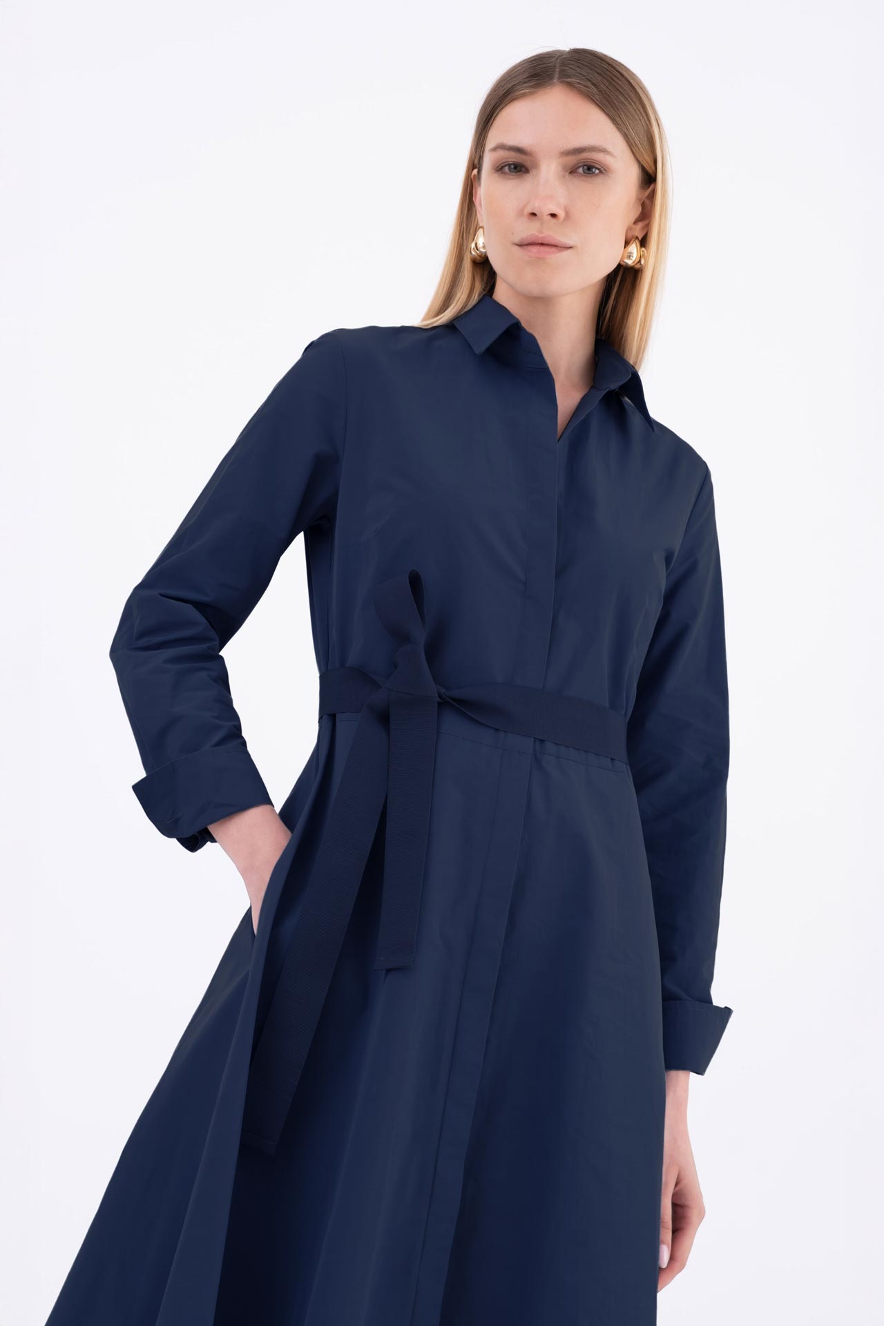 Chemisier midi taffeta con cintura gros grain blu Anna