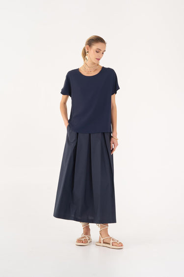 Maxi gonna tela paracadute cotone blu navy vita alta e tasche Gorizia