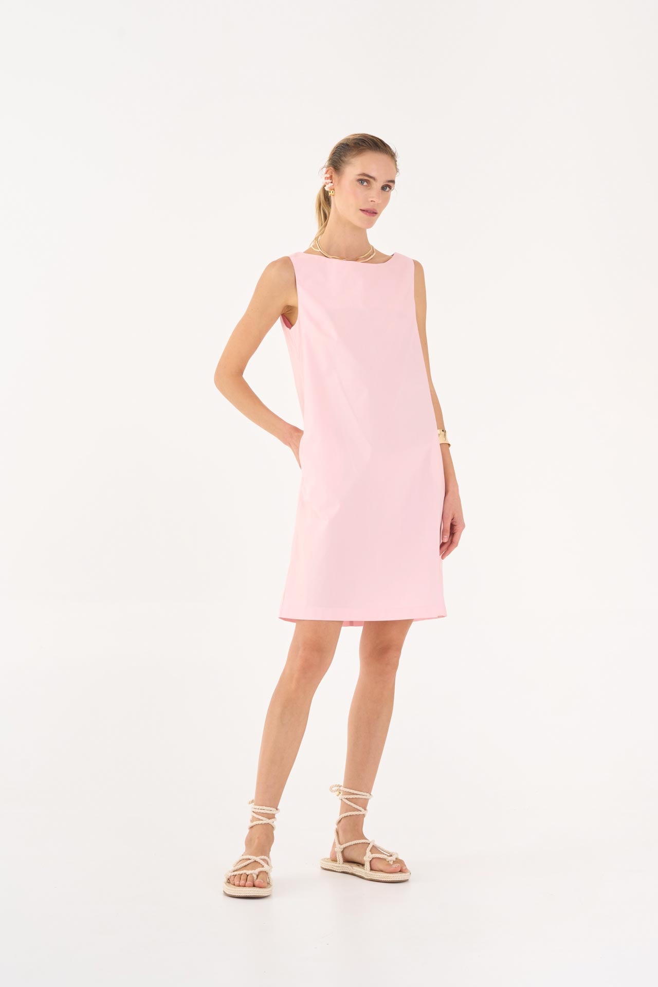 Abito tunica tela paracadute cotone rosa cipria Adorina