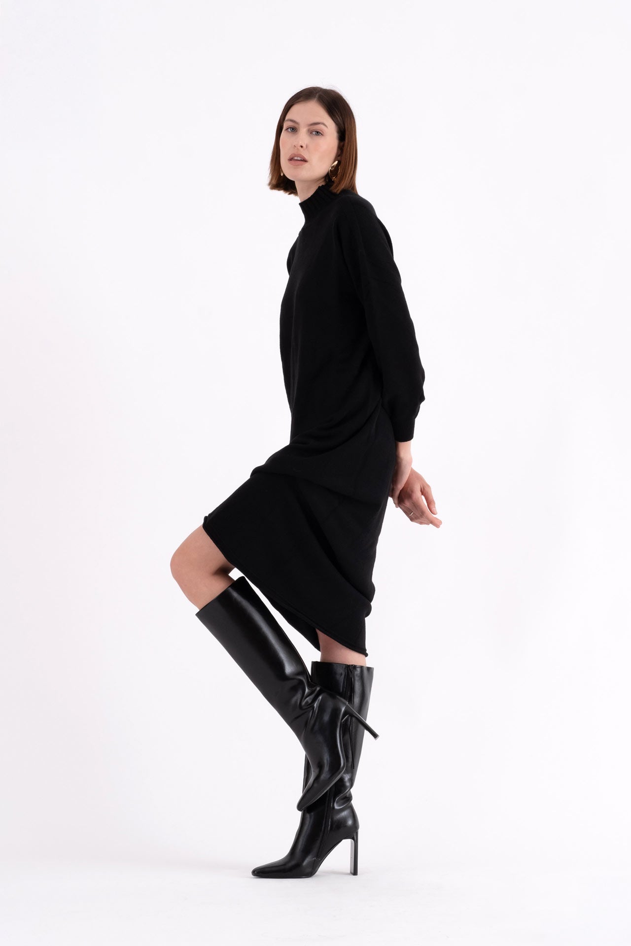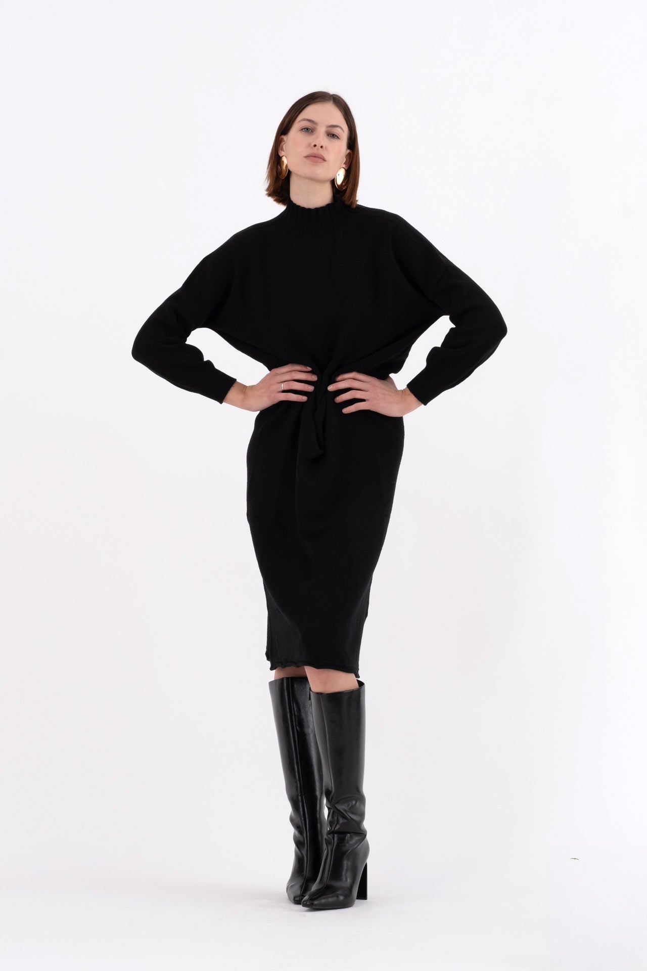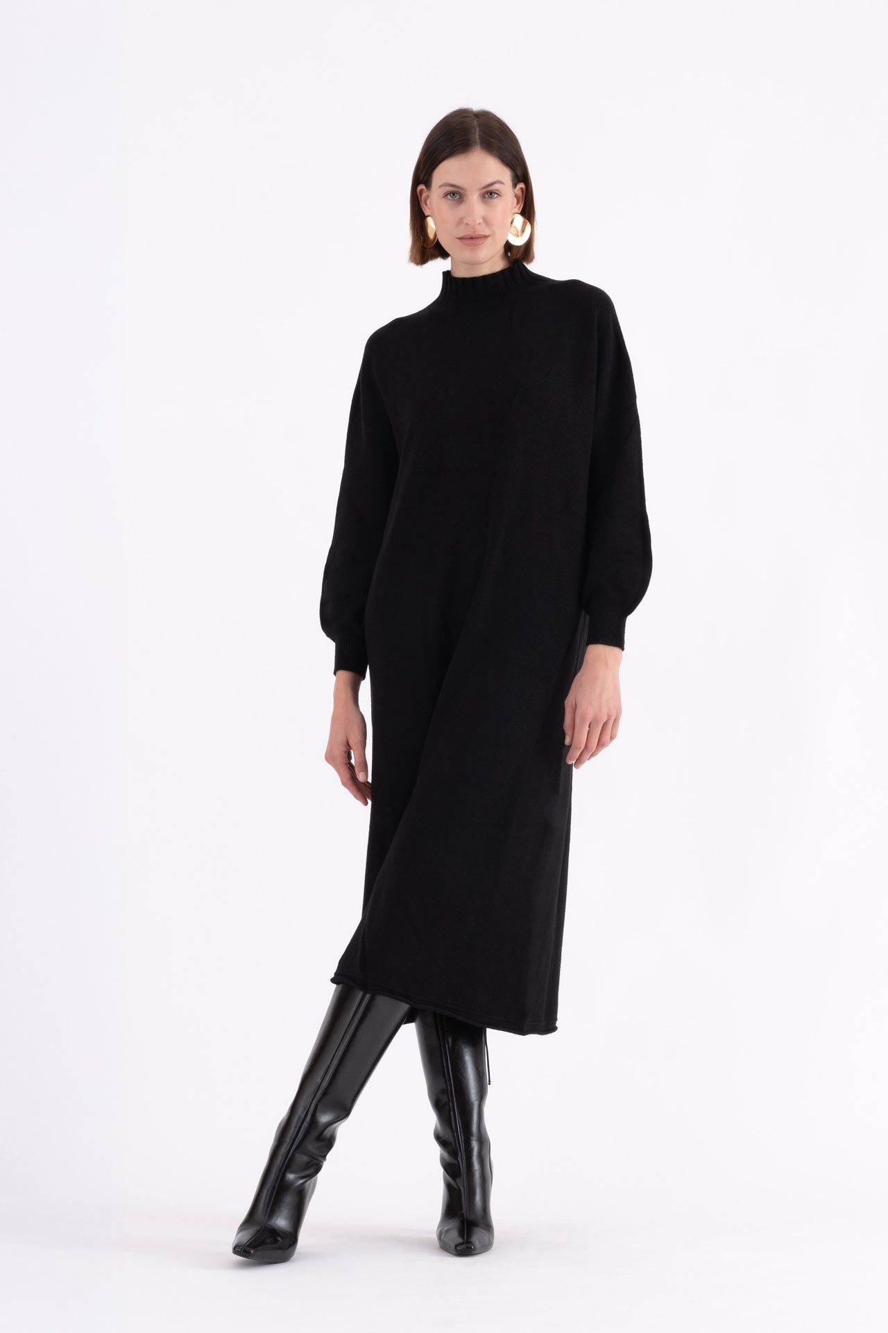 Abito lungo in maglia collo alto nero Mensara