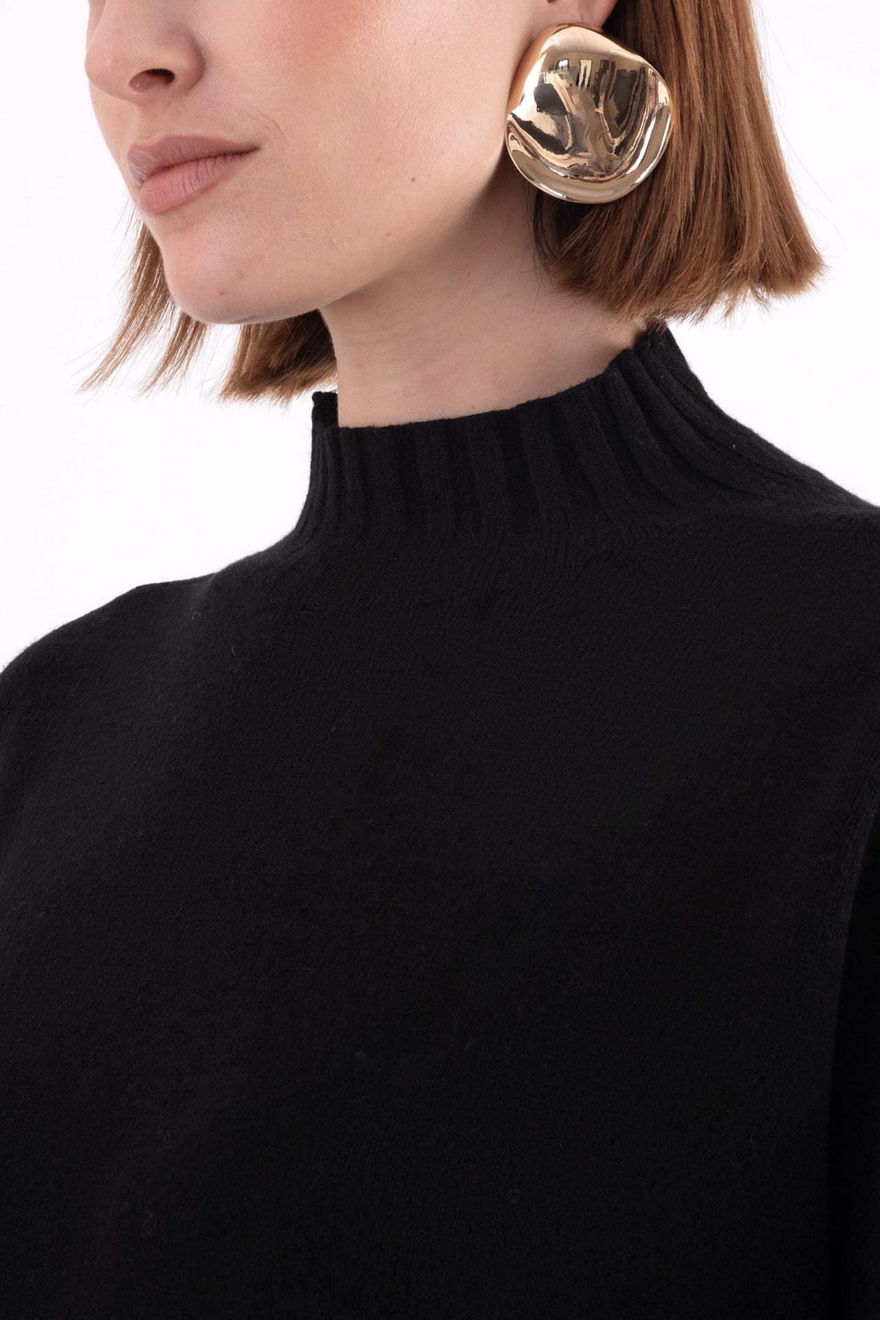 Abito midi in morbida viscosa, con maniche lunghe e collo a cratere che dona un’eleganza sobria e contemporanea.