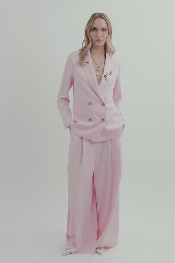 Pantalone palazzo sartoriale effetto lino rosa Pasicrate