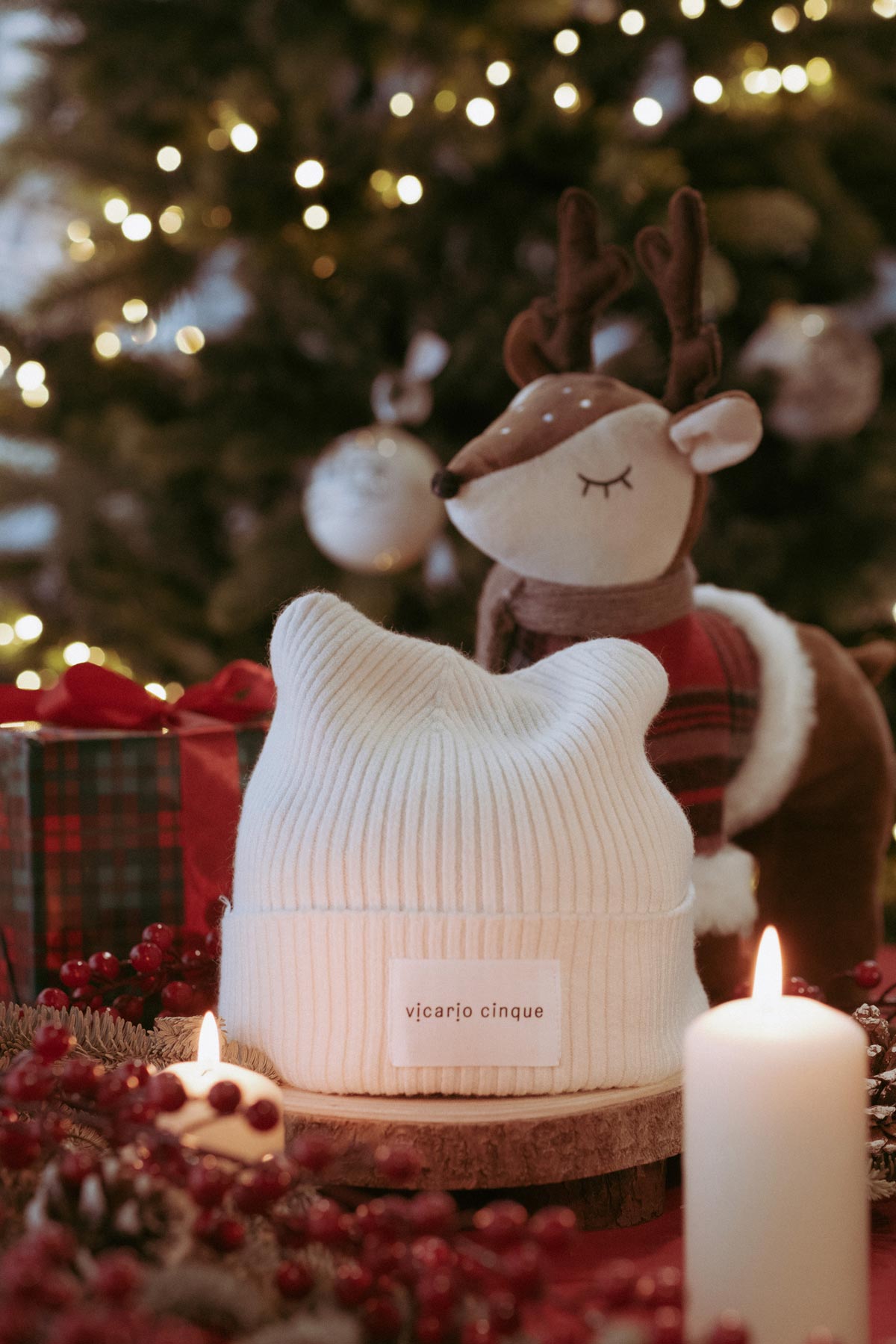 Berretto in lana a costine bianco Hariel