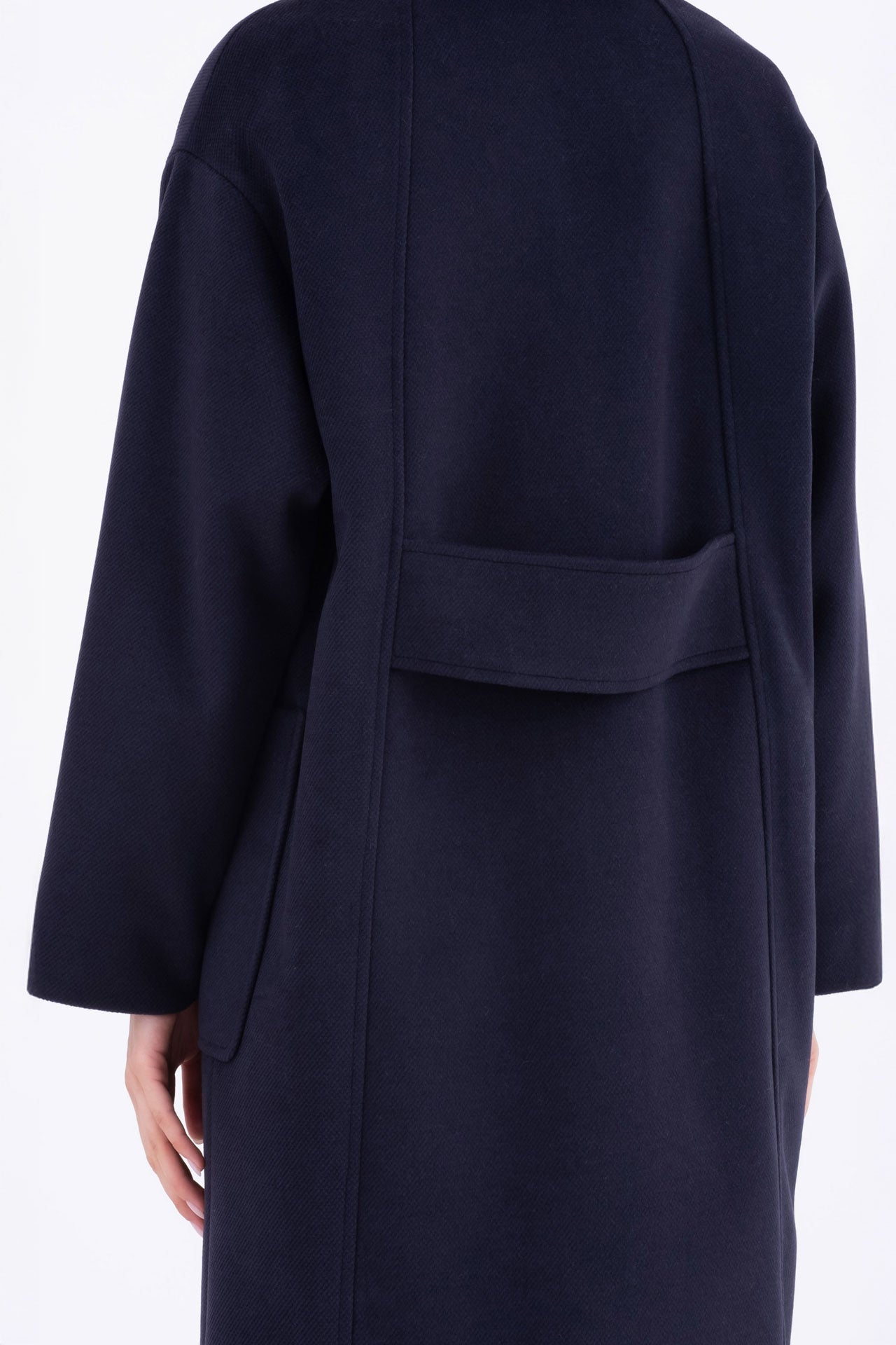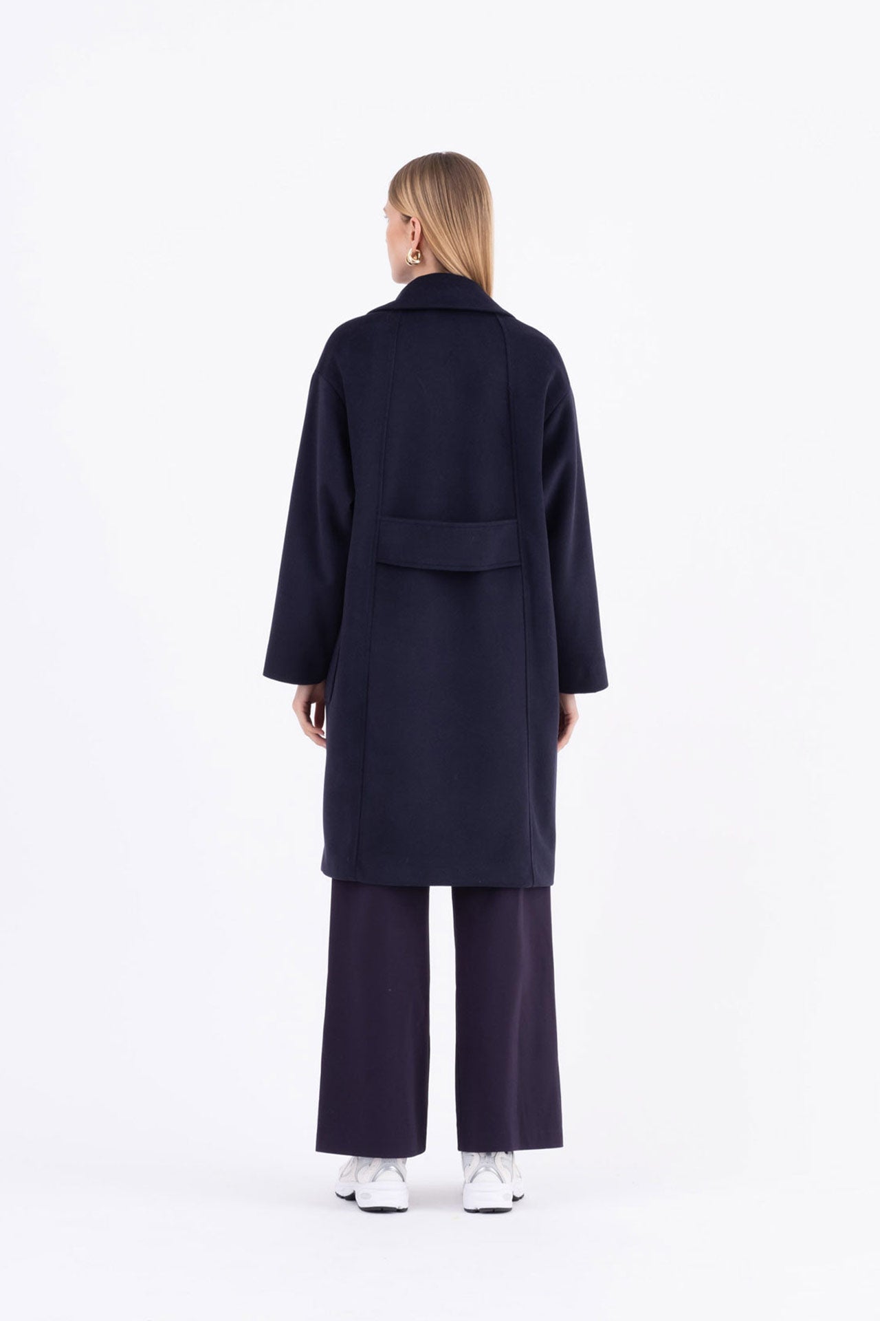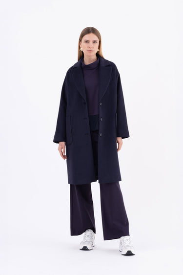 Cappotto over blu con spalla scesa e tasche applicate Cemma