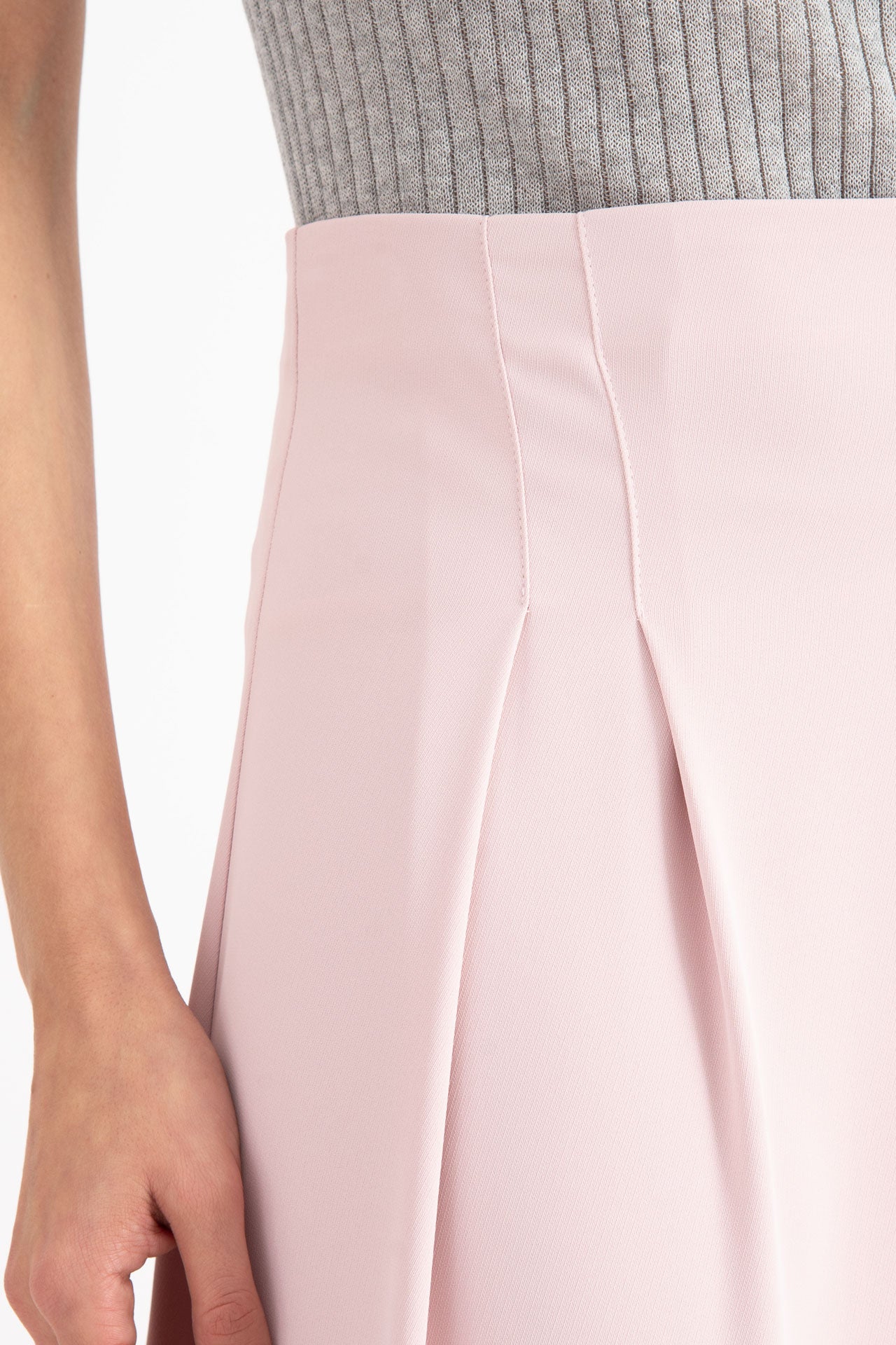 Il design è caratterizzato da una piega frontale che dona verticalità e raffinatezza alla silhouette. Dotata di tasche laterali e chiusura con zip sul retro, unisce funzionalità e cura del dettaglio. Un capo versatile e femminile, perfetto per costruire look chic dal giorno alla sera.
