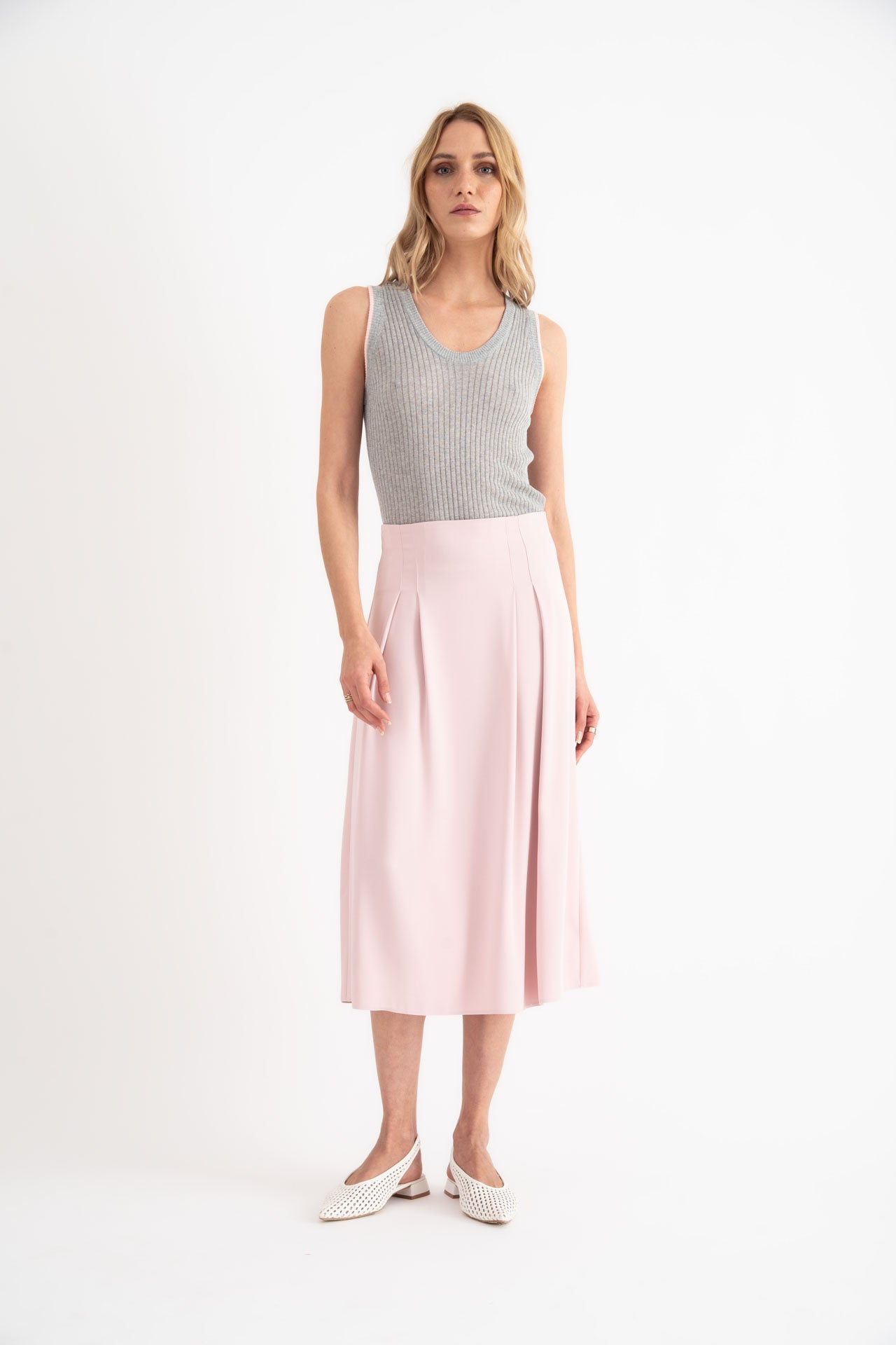 Gonna midi cady fluido rosa Galen