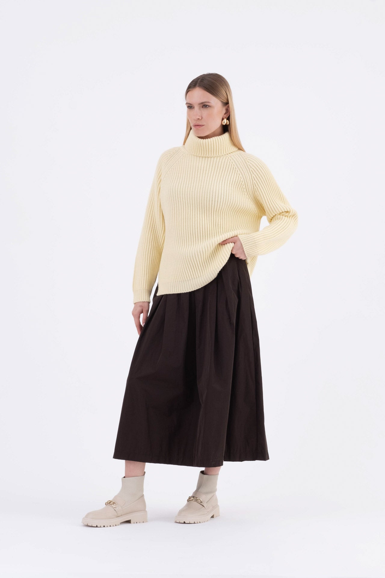 Maxi gonna a vita alta in taffetà con faldoni strutturati che donano volume ed eleganza.