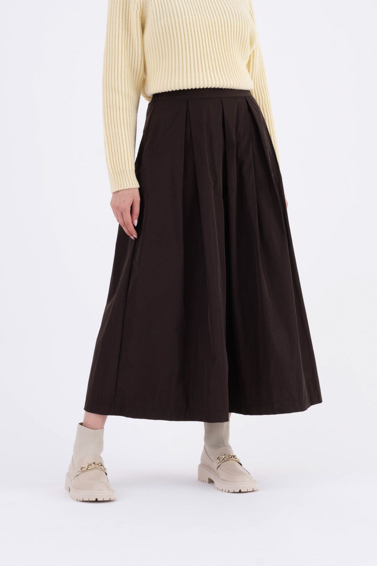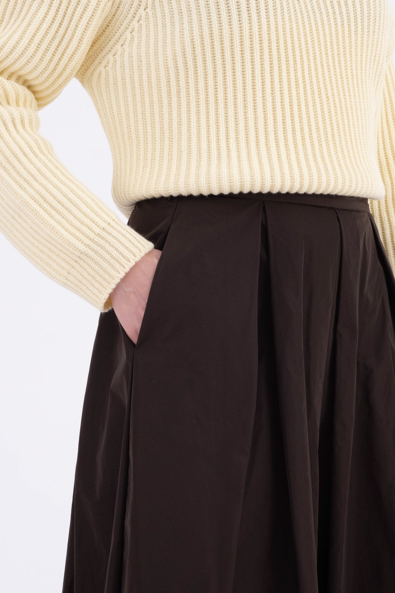 Gonna a vita alta in taffetà con zip e tasche marrone Gorizia