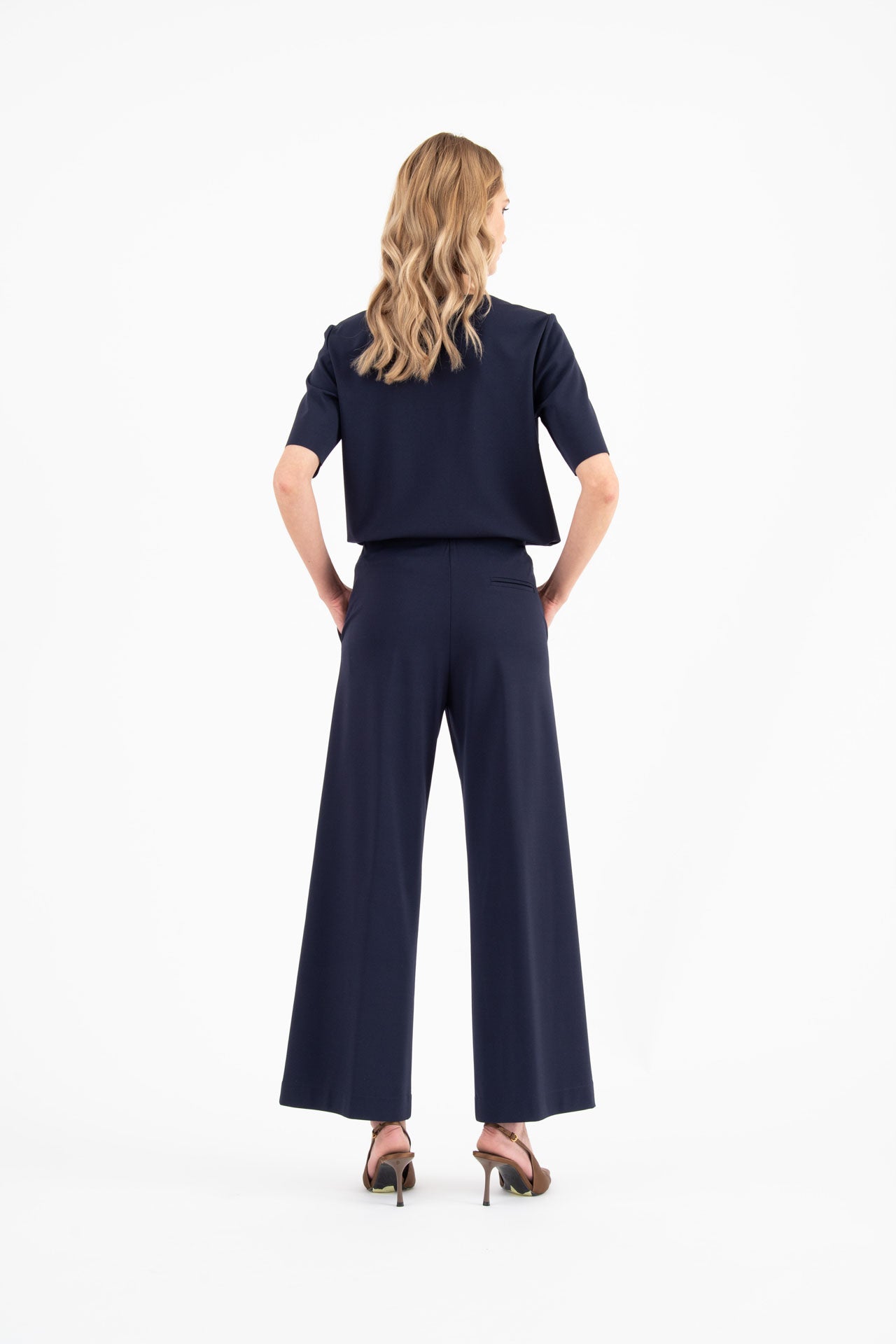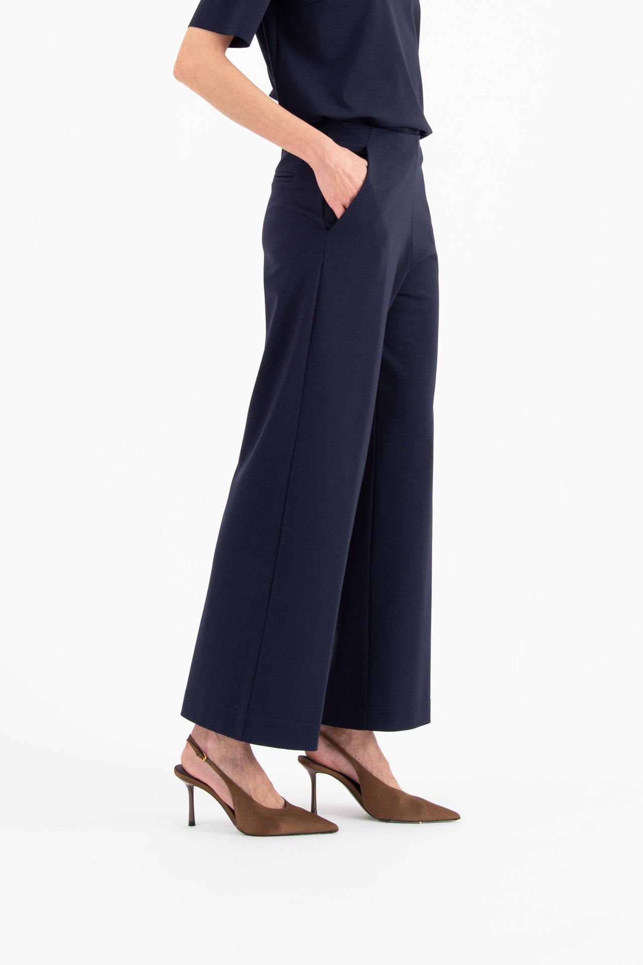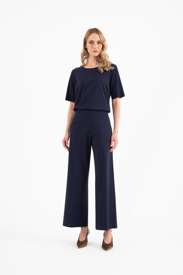 Pantalone ampio alla caviglia in punto milano stretch tasche blu notte Padova