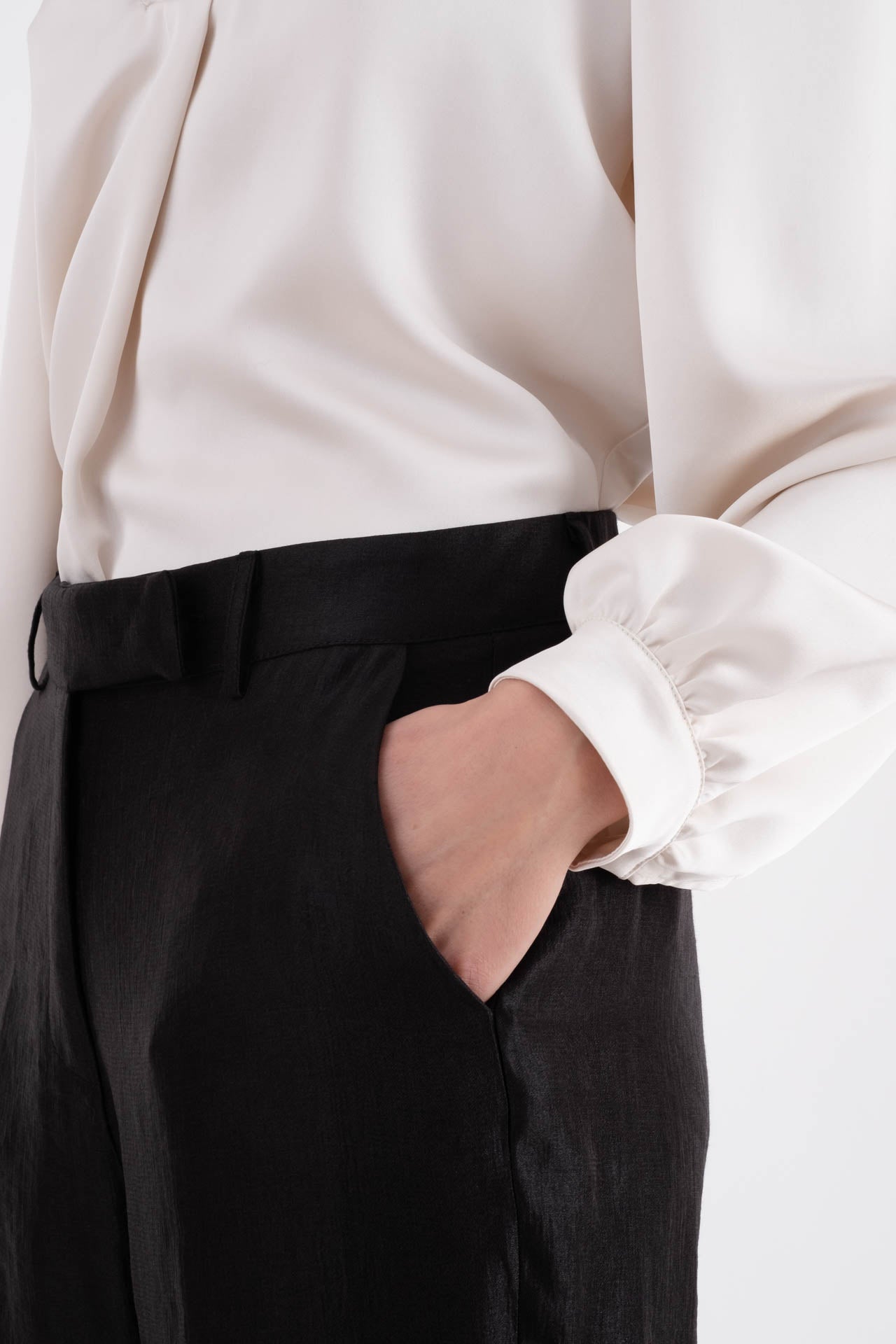 Pantalone sartoriale in mirror lucido vita alta nero Paderna