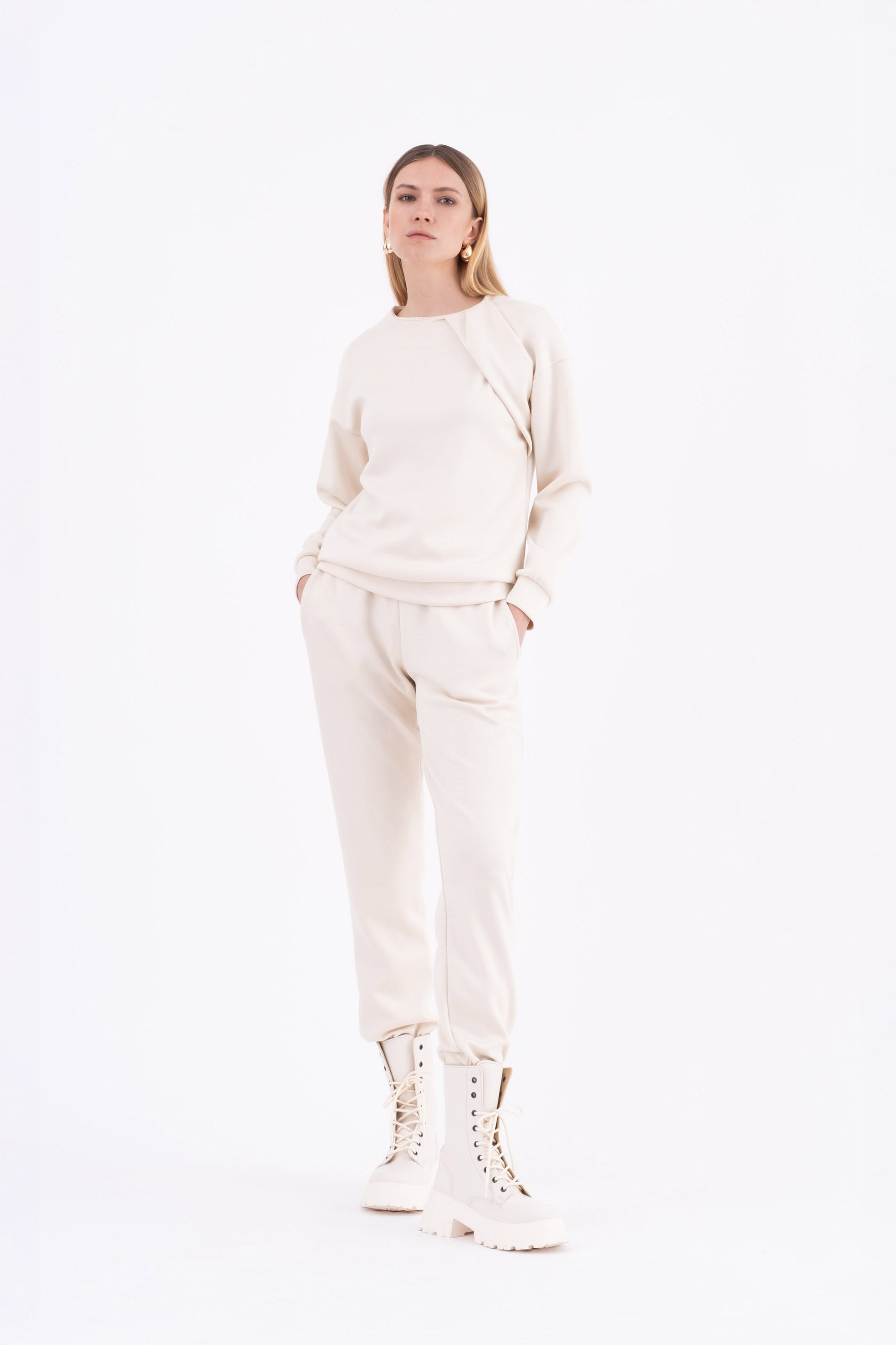 Il fondo gamba con elastico crea una linea sportiva ma curata, ideale per look casual e rilassati.