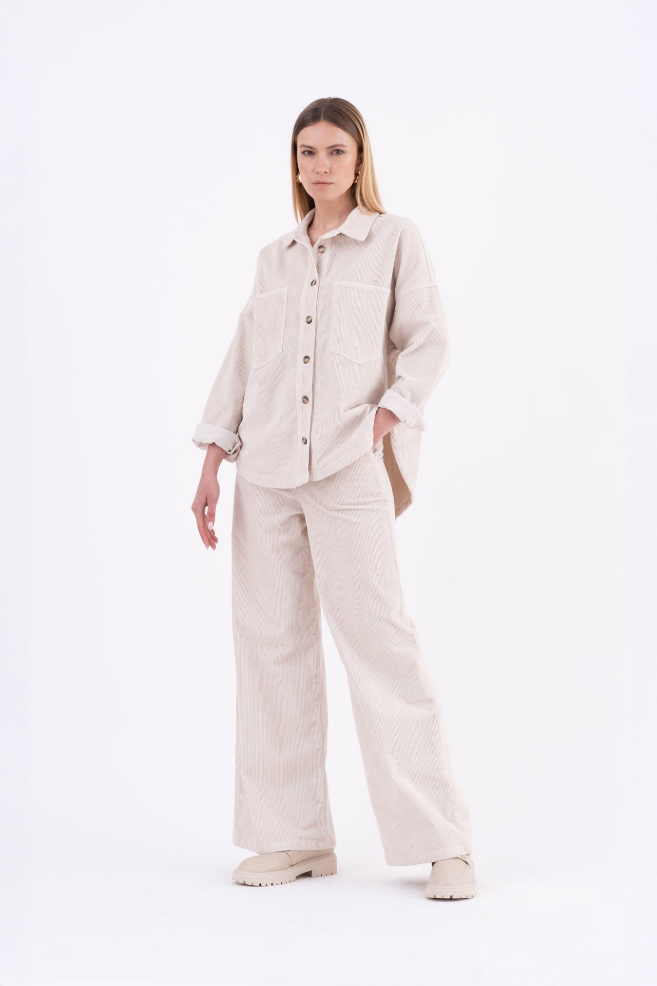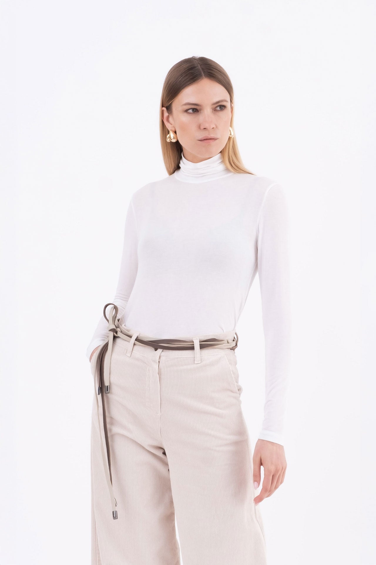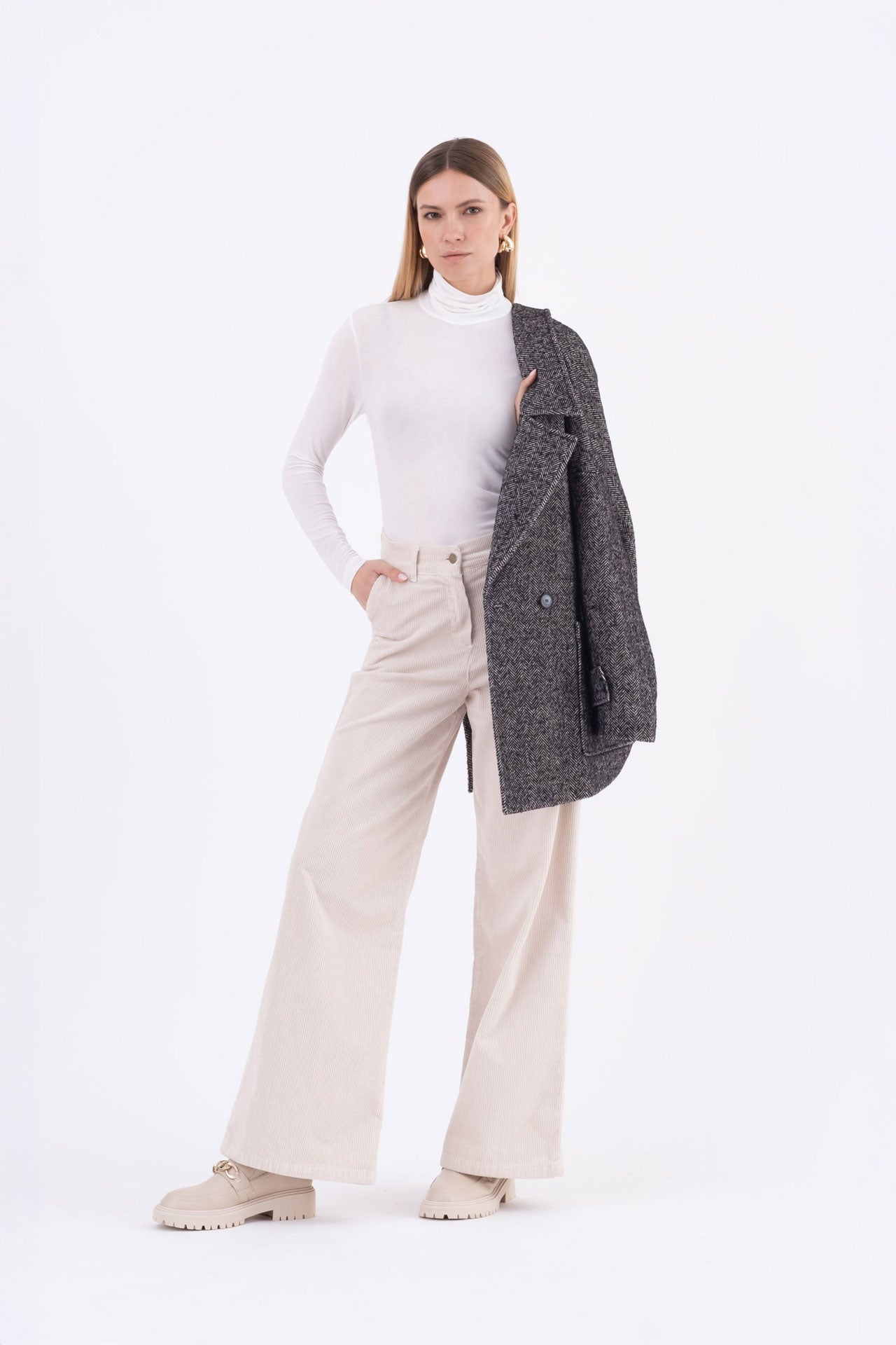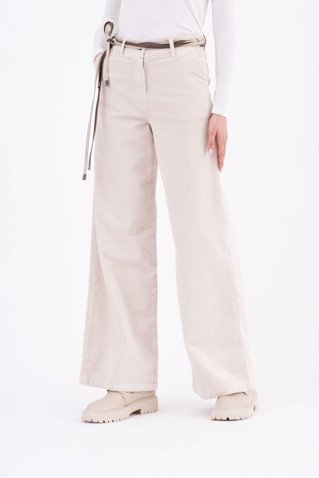 Pantalone in velluto stretch gamba dritta avorio Printa